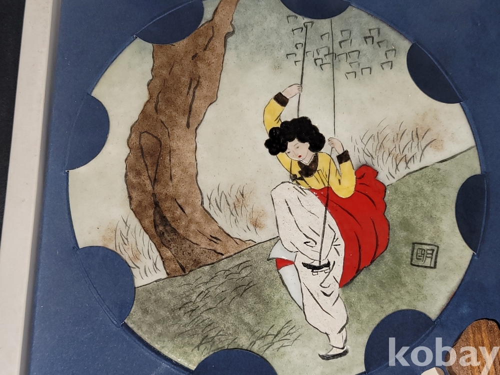 빈티지 혜원 신윤복 그네 그림 칠보 접시 도자기 공예품입니다.