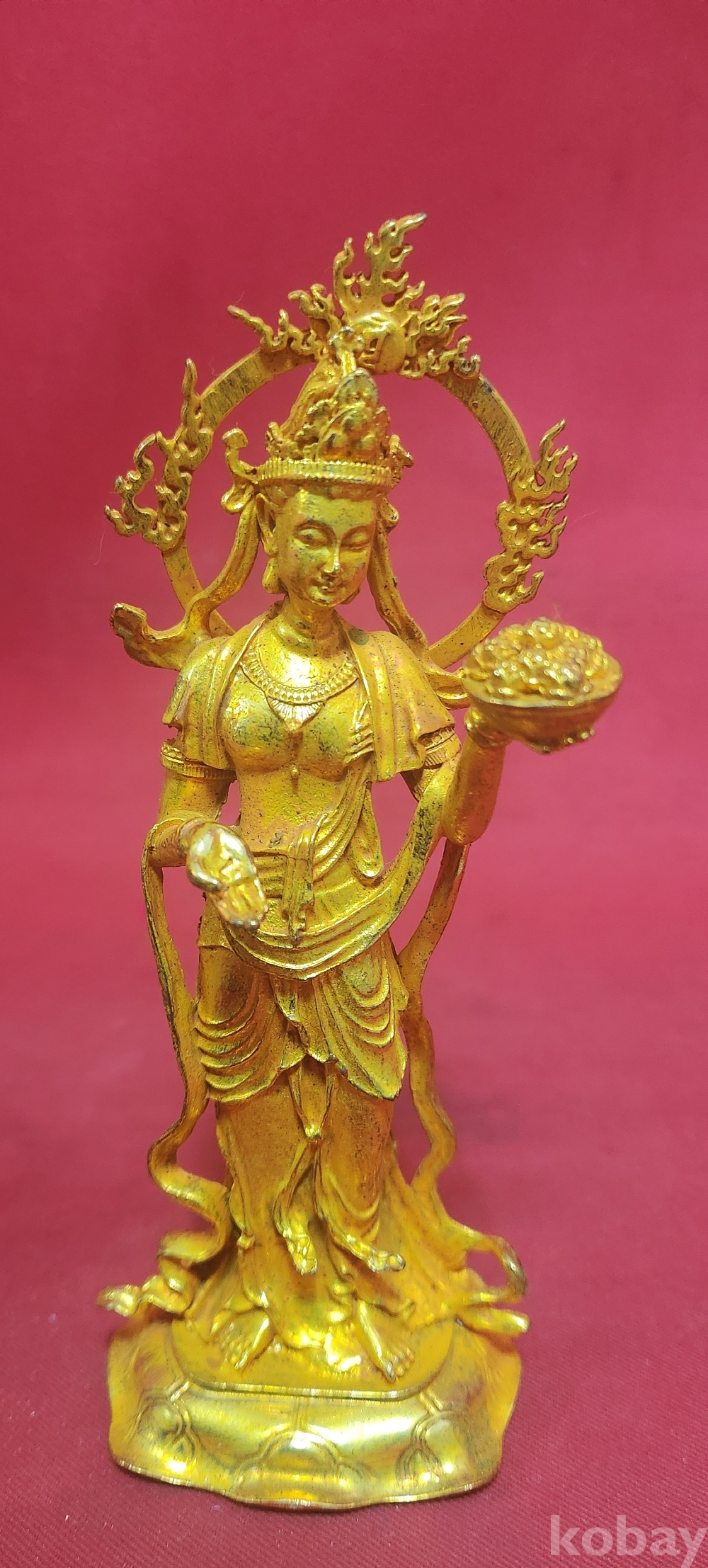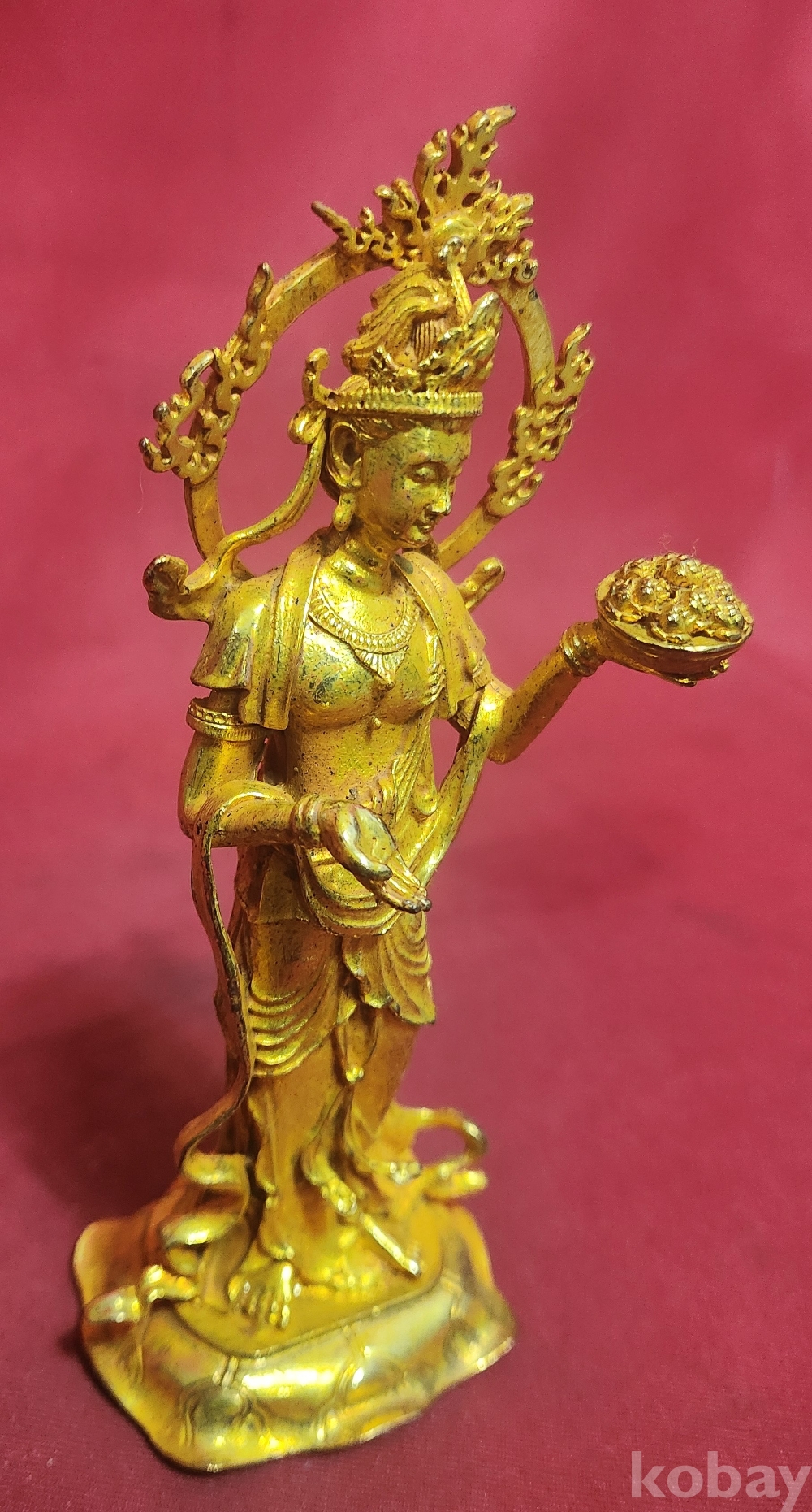 손에는 황금 덩어리 접시를 들고 있으니 재물을 상징하는 것으로 사료됩니다,