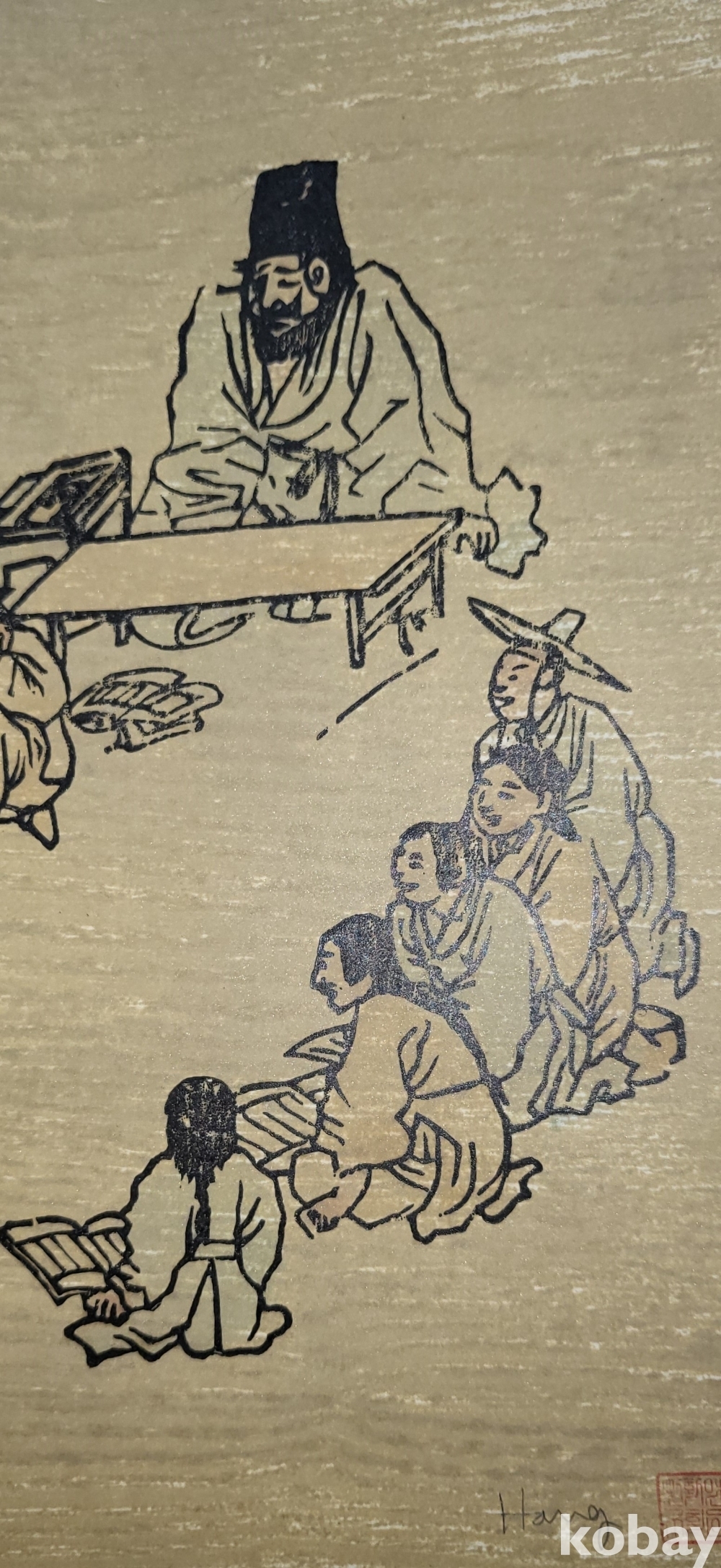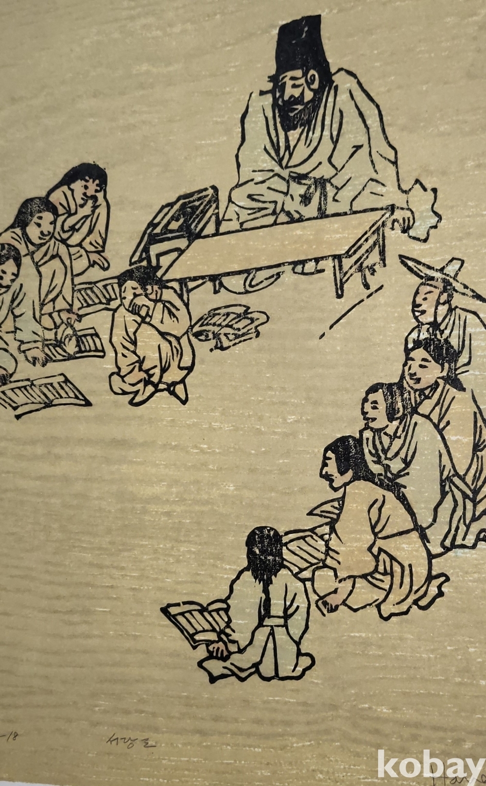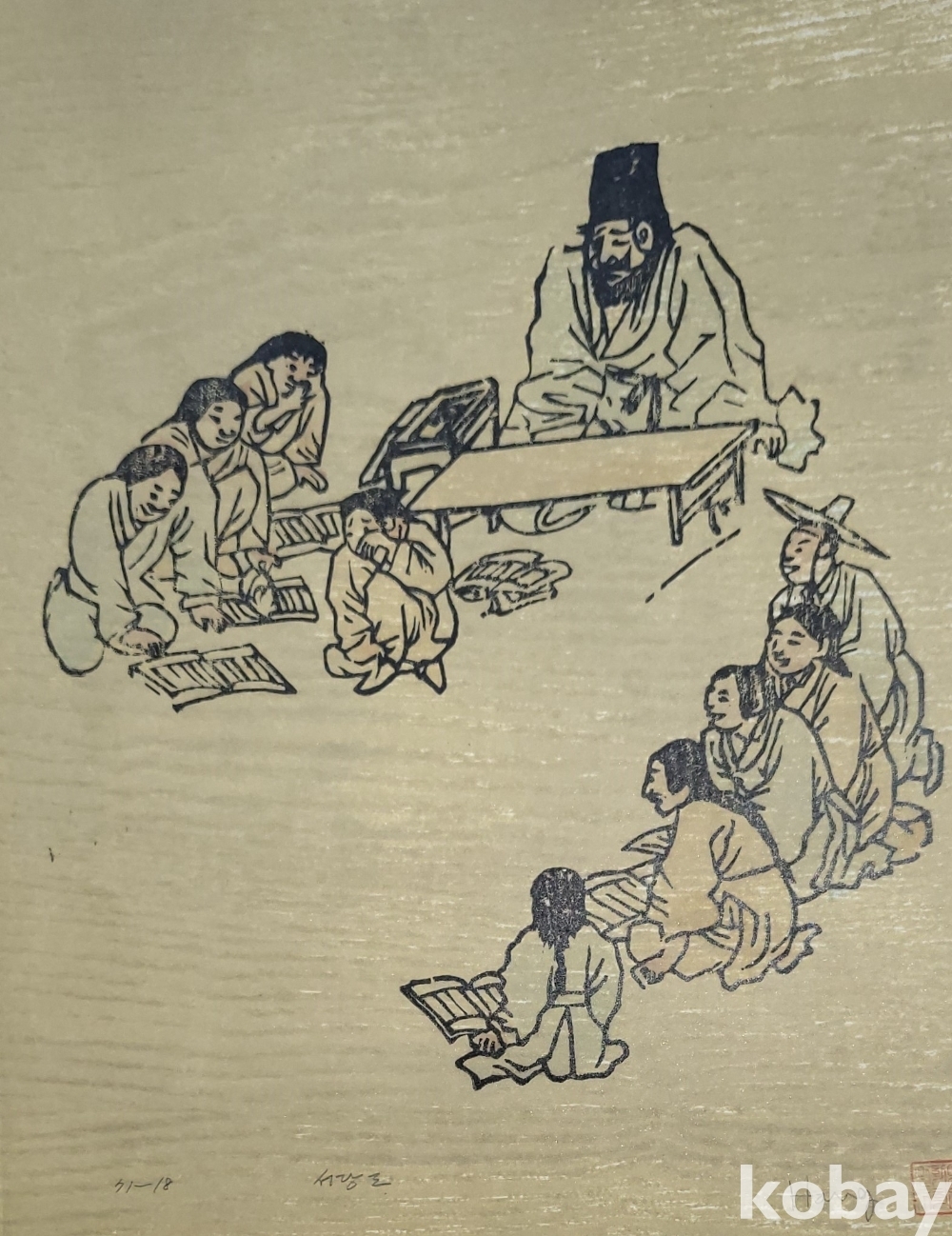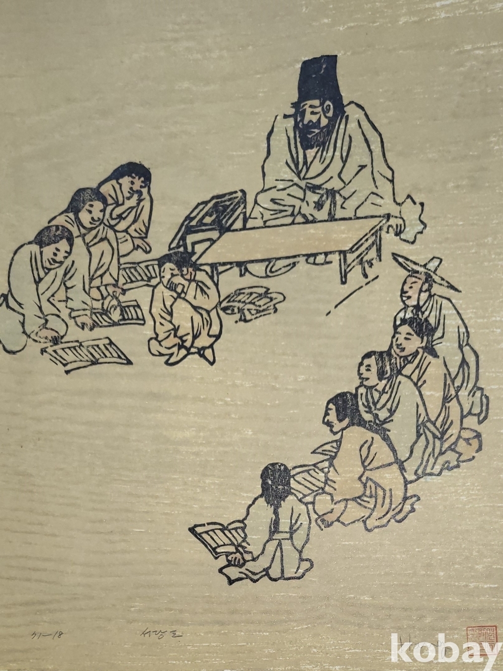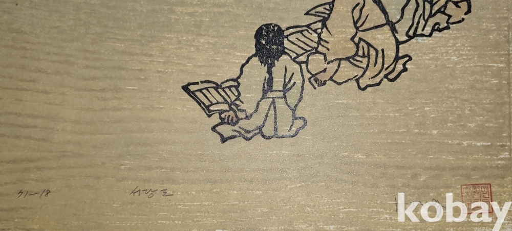 한국풍속판화로 1972년 한국판화 박물관에서 제작한 단원 김홍도 " 서당도"목판화입니다,