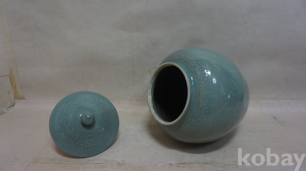 ◈◈청자../음,양각 포도.송.학문,ㅡ''유개 호 한점◈◈