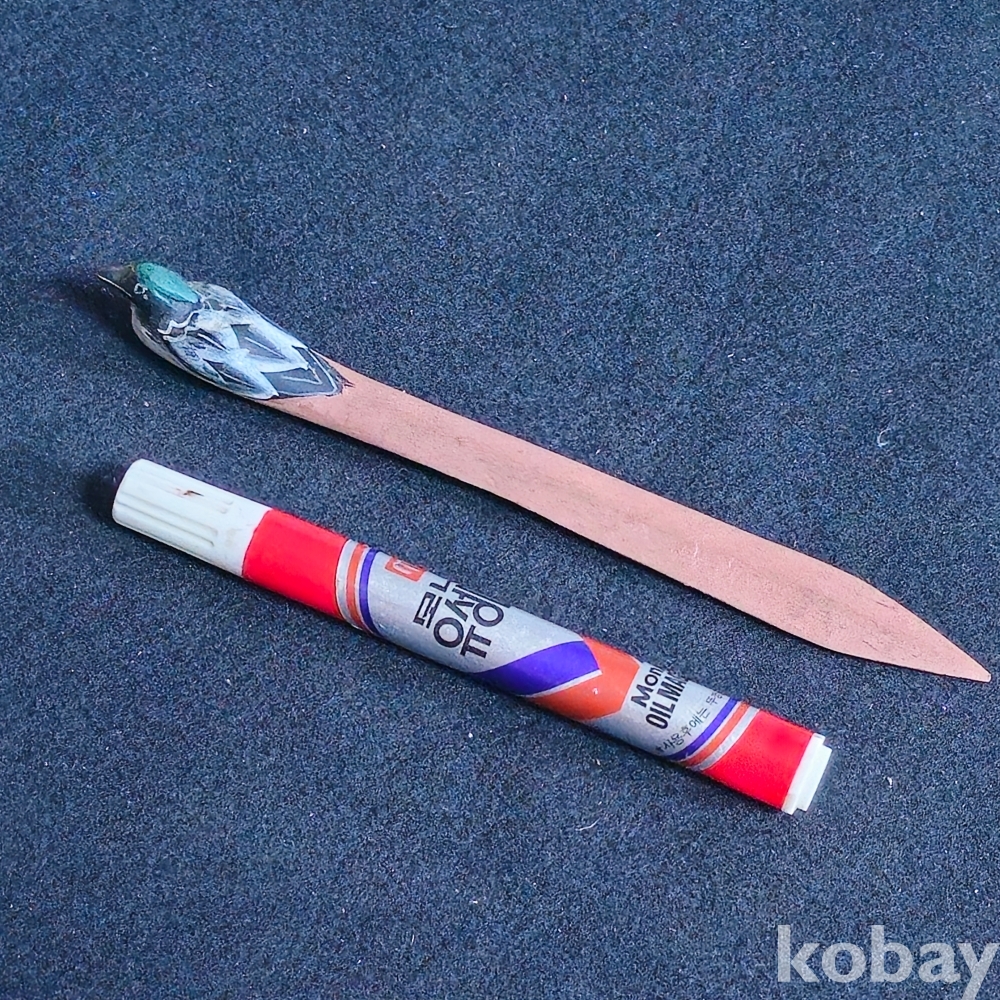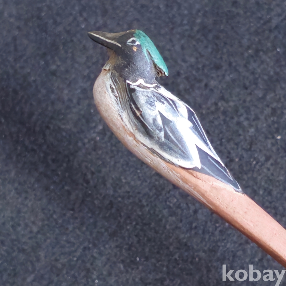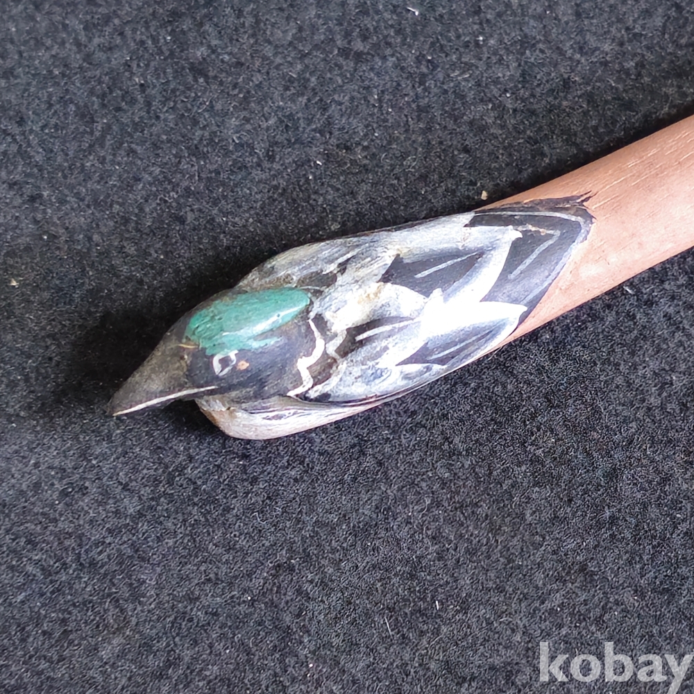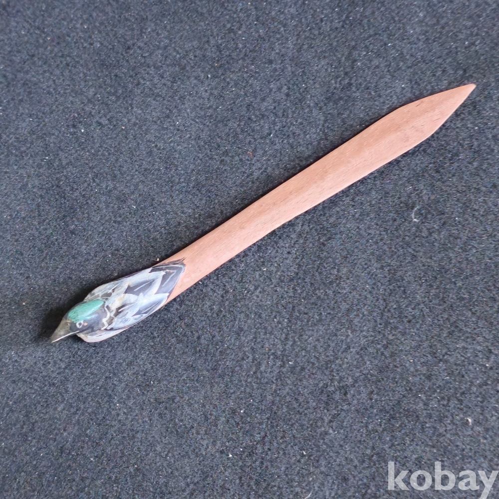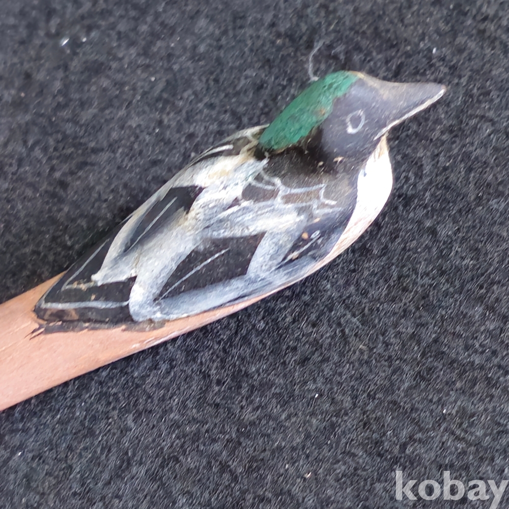 (((근현대사자료/인테리어소품)) 오래전 채색이 이쁜 원앙모습 나무편지칼겸 인테리어소품