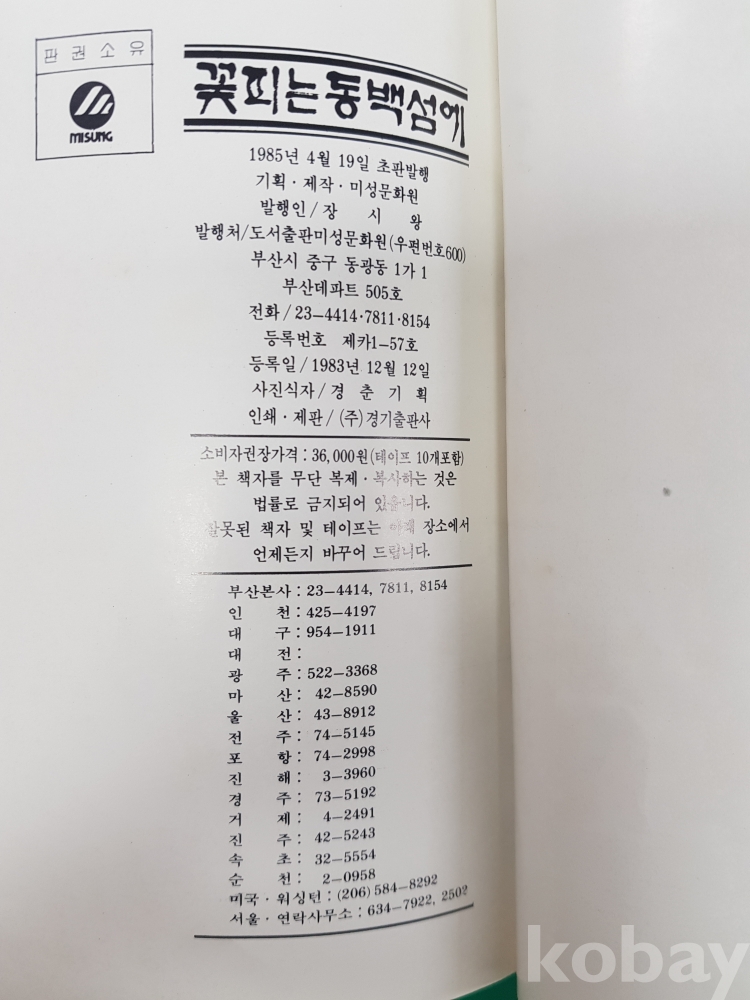 1985년 KKO PI NON DONG BAEK SEOME 海外弘報用 (꽃피는 동백섬에)