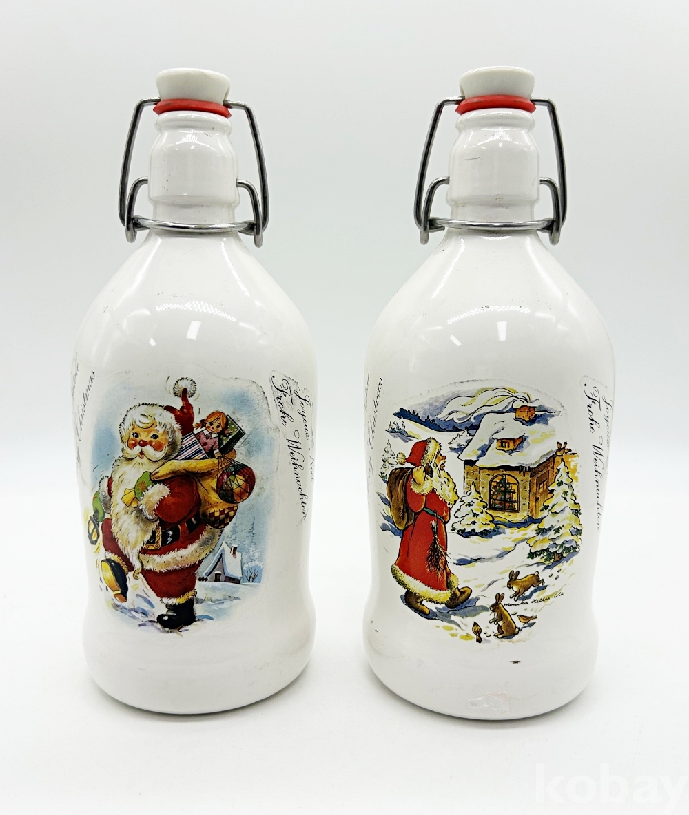 상품설명 | 산타클로스 일러스트와 함께 독일어 문구 'Frohe Weihnachten (메리 크리스마스)'가 새겨진 장식용 병이다. 상단에는 금속 프레임의 스윙식 잠금 장치가 부착되어있다. 2점 일괄. | ||