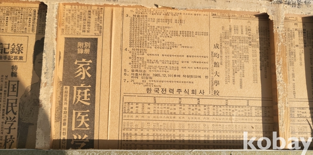 마지막 4개의 이미지는 병풍에서 분리하는 과정에서 내부에 있는 1966년 성균관 대학교 광고가 실린 신문으로 보아서