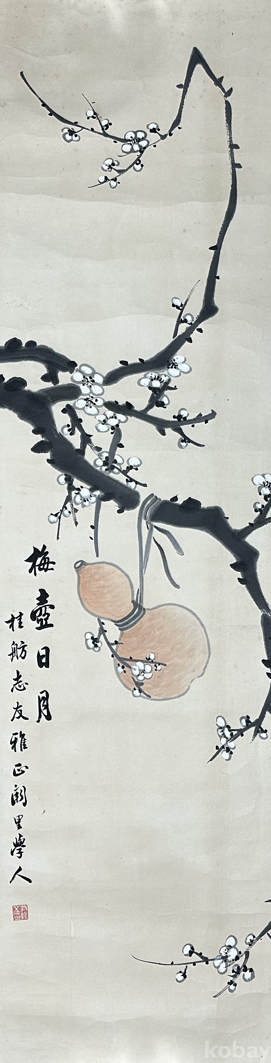 본 작품은 ‘梅壺日月(매호일월)’이라 제명된 수묵채색화로, 매화와 호리병을 중심으로 그린 전통 동양화입니다. 가지의 유려한 선과 먹의 농담이 조화를 이루며, 매화의 청아함과 호리병의 따뜻한 색감이 어우러져 절제된 미감을 전합니다. 전반적으로 단정한 구성과 담백한 색채가 돋보이는 문인화입니다.