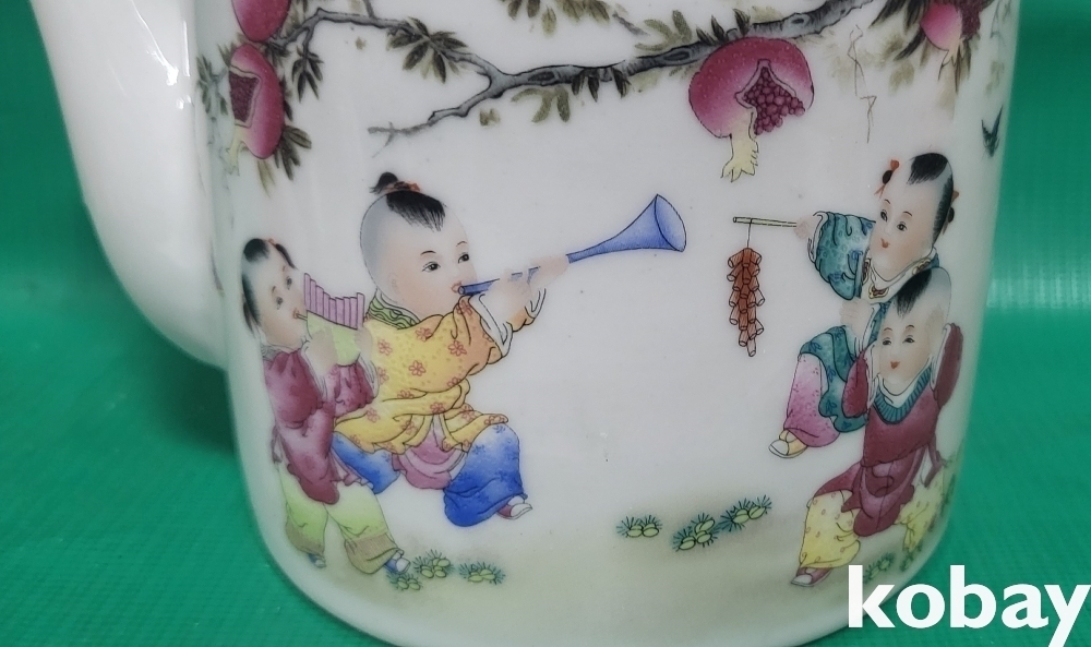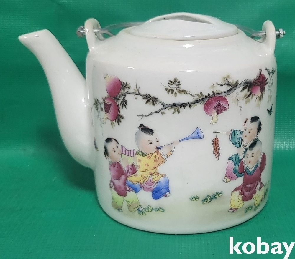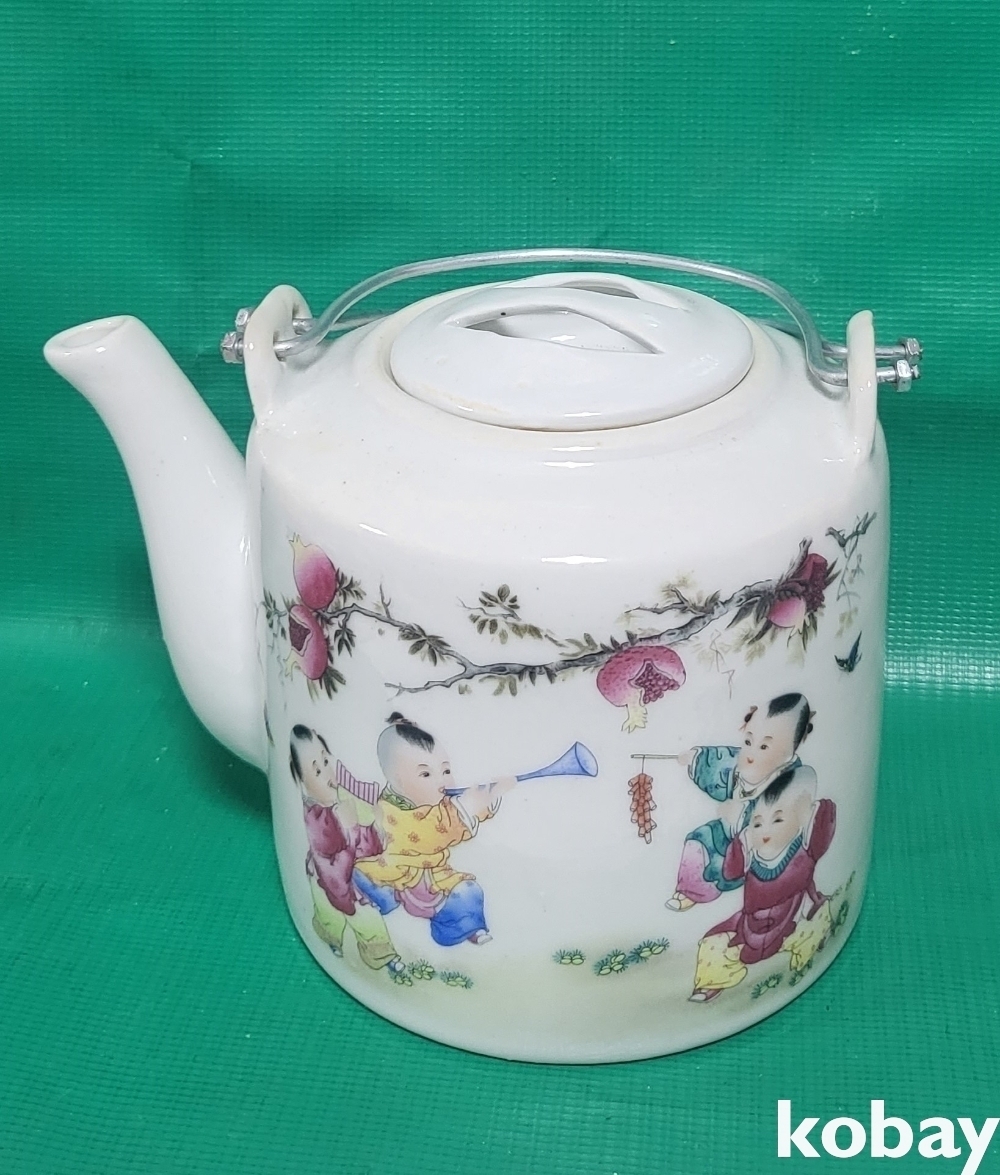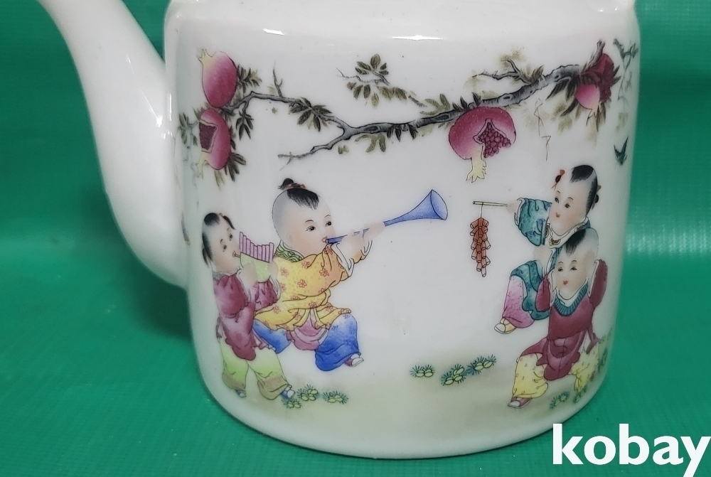완옥(玩玉) 관지 보이는 동자문양 주전자입니다,