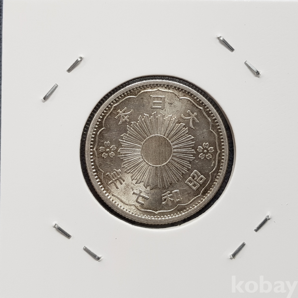진품 일본 은화 - 소화(쇼와) 7년(1932년) 오십전 욱일 은화