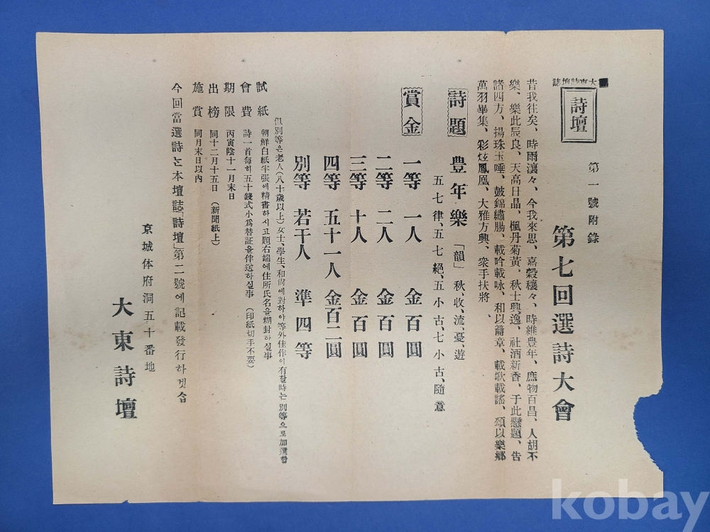 일제강점기 京城 체부동 대동시단 제7회선시대회 팜플릿