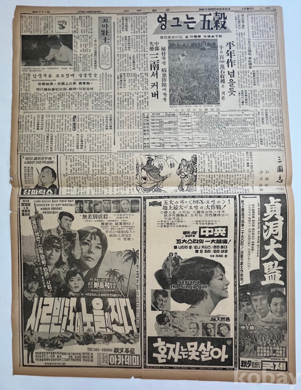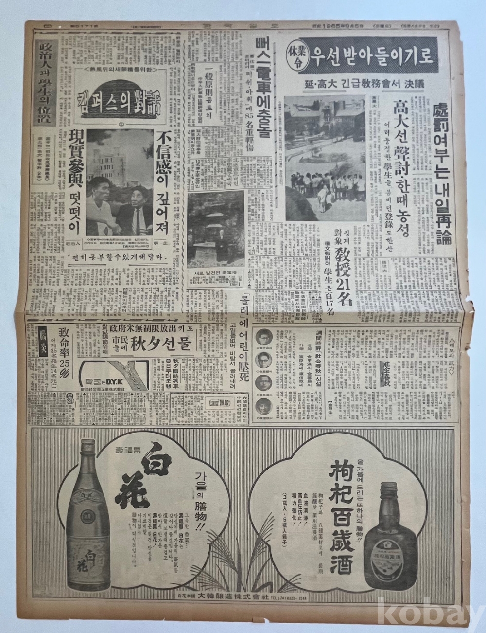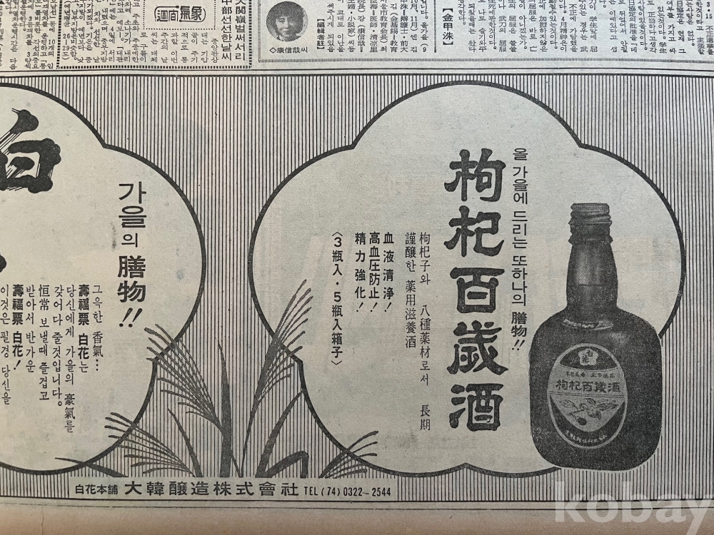 구기백세주 광고가 실린 1965년 한국일보 낱장입니다.
