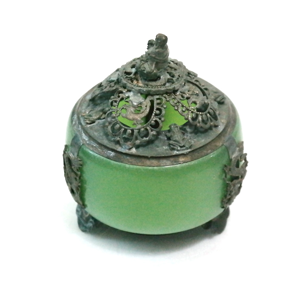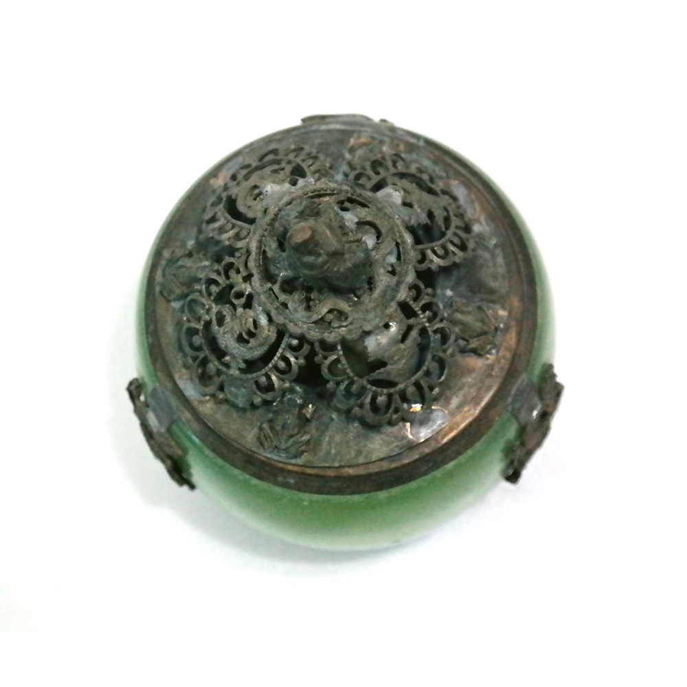 몸통이 백동으로 만들어졌으며 몸통부분은 옥이 들어간 앤틱주전자 소품 입니다.