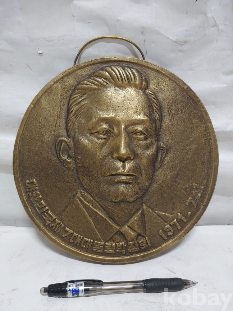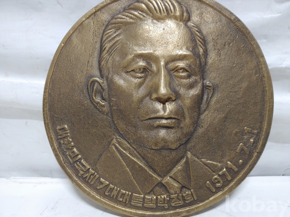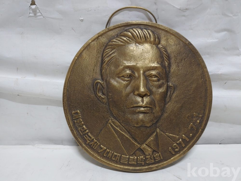 ""대한민국 제7대 대통령 박정희 벽걸이형 두툼한 놋쇠 동판""