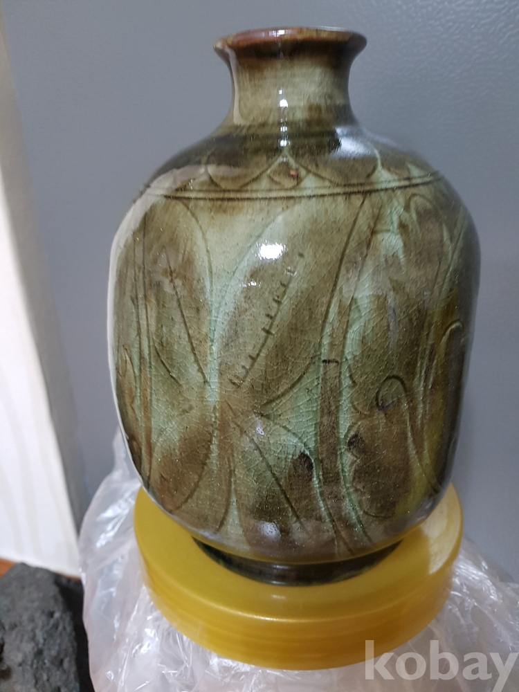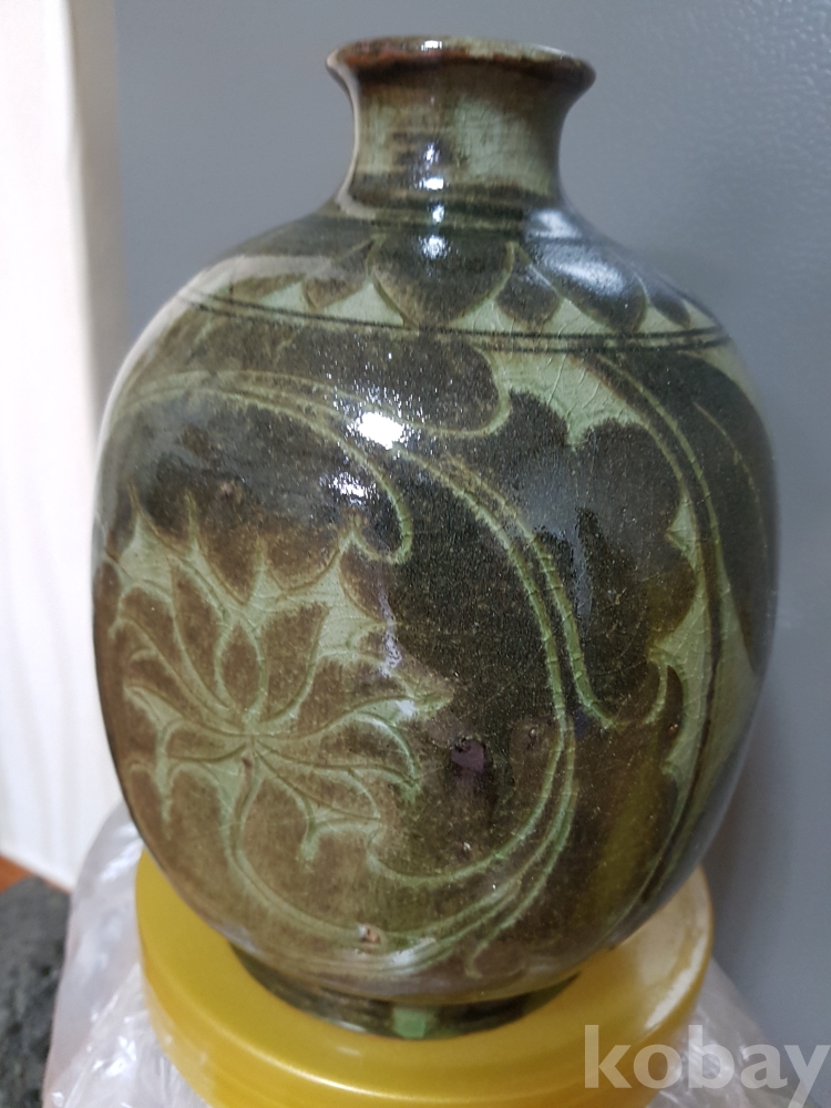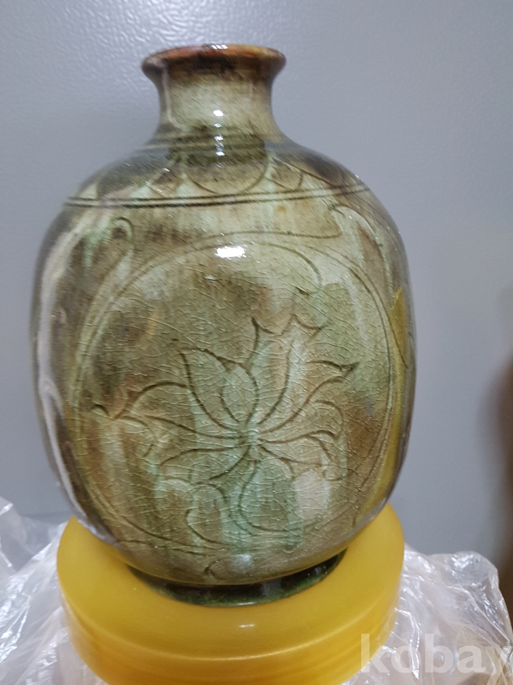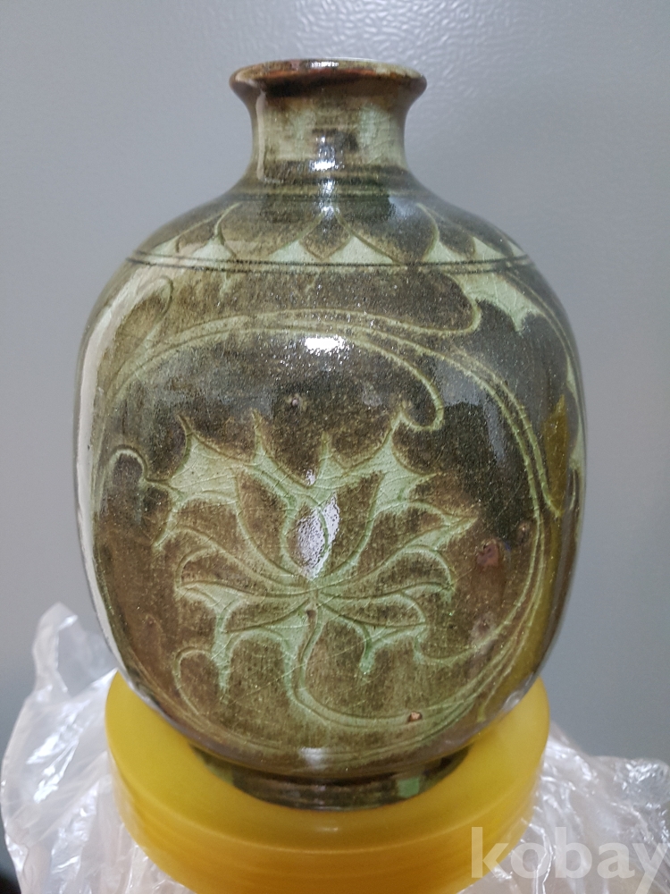 신정희 작품 도자기 철화 모란문 편병 1점 입니다