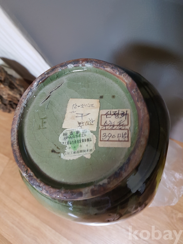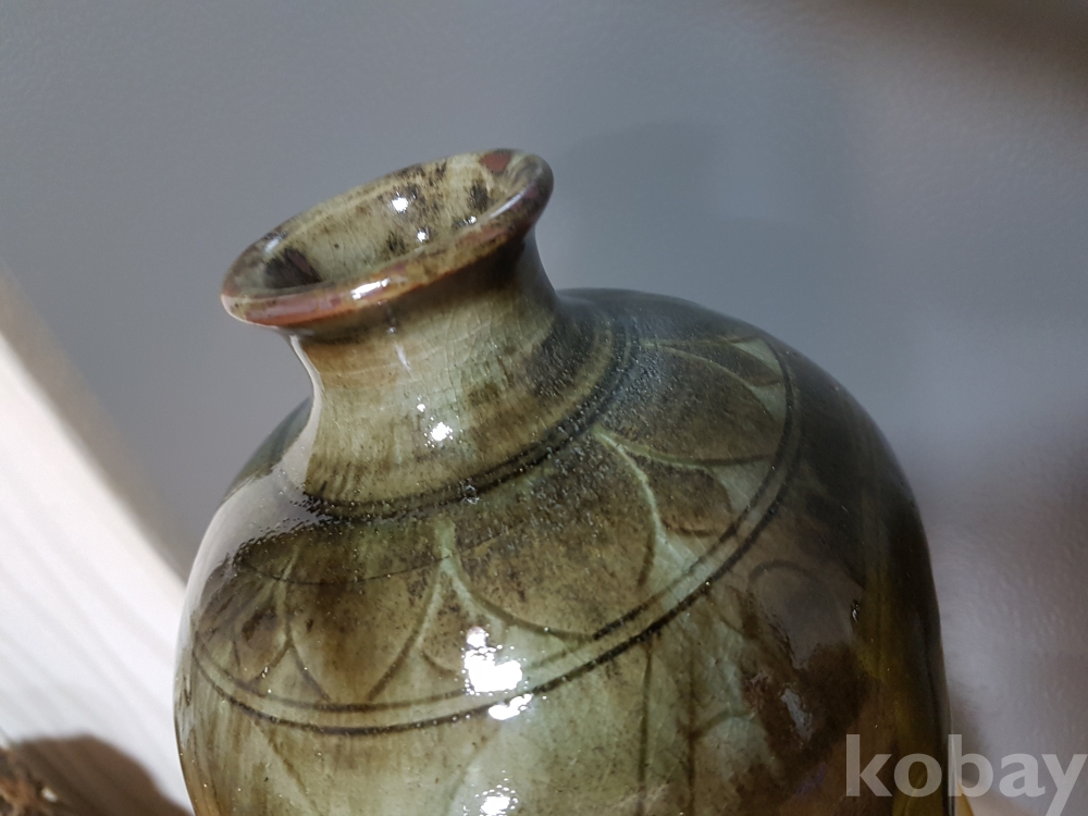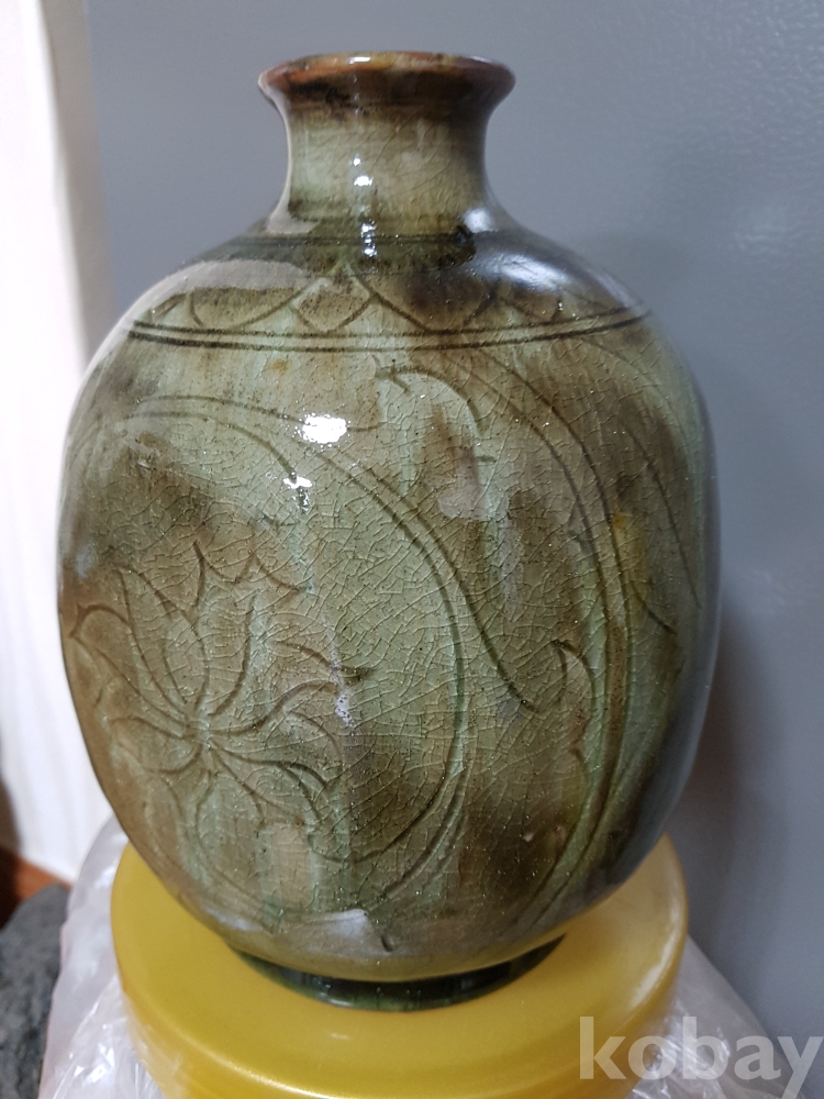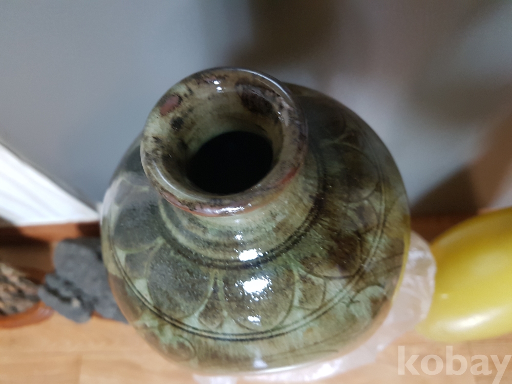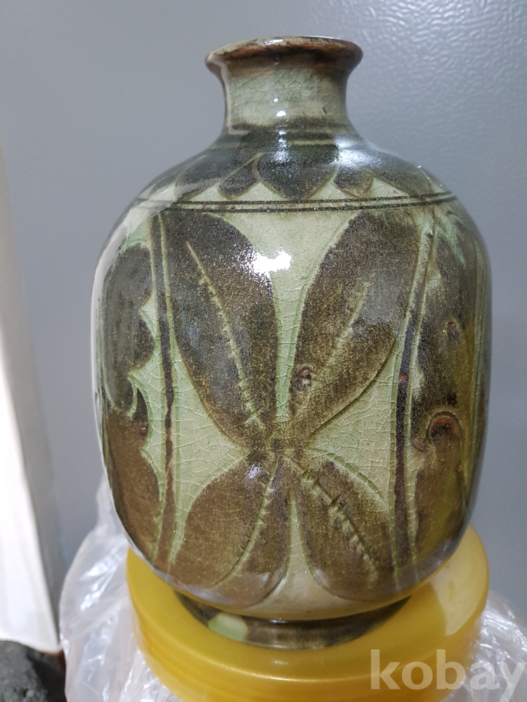 신정희 작품 도자기 철화 모란문 편병 1점 입니다