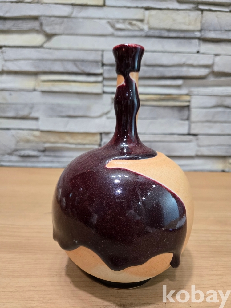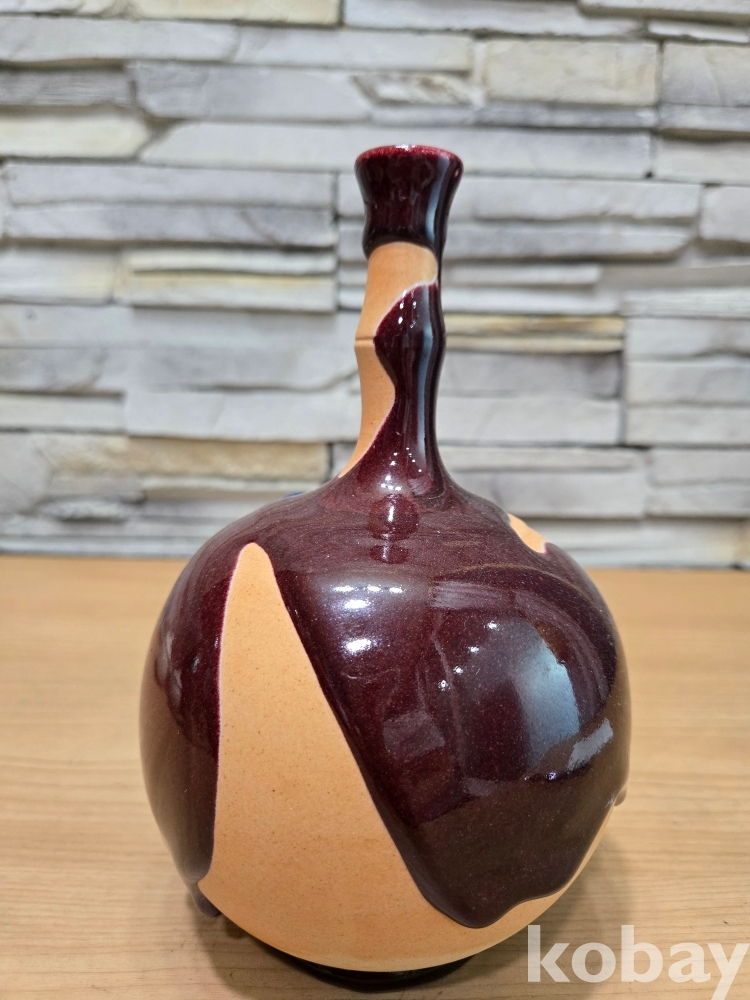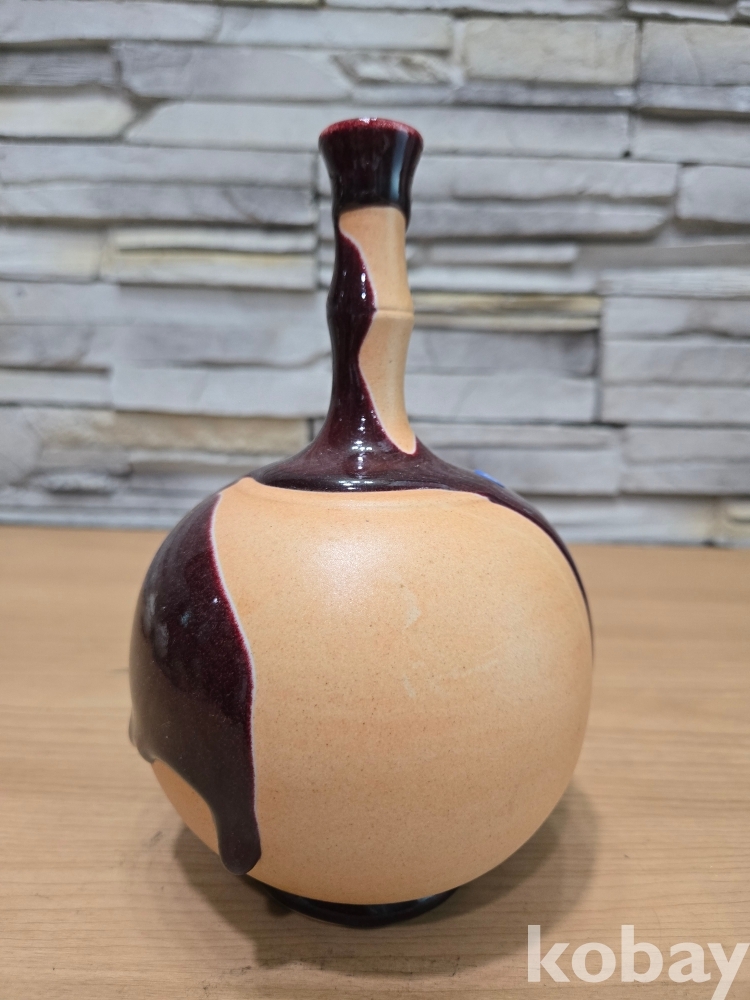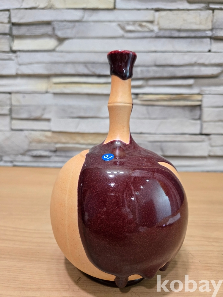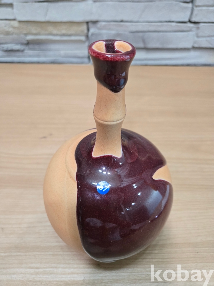 대나무 모양의 긴 목의 둥근 도자기 입니다.