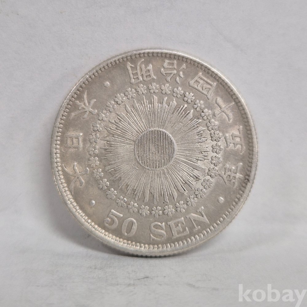 - 진품 일본 은화 - 명치(메이지) 45년(1912년) 오십전 욱일 은화