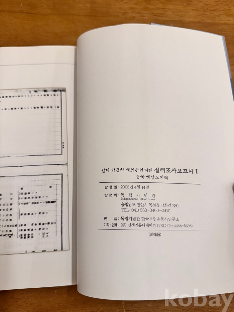 [일제강점기, 강제동원] 독립기념관 한국독립운동사연구소, <일제 강점하 국외 한인 피해 실태조사보고서1권_중국 해남도지역>, 2005, p. 310, 상태 중상급(사진참조)