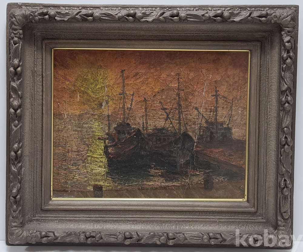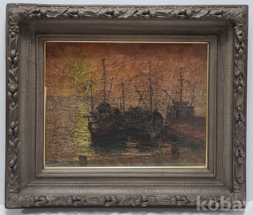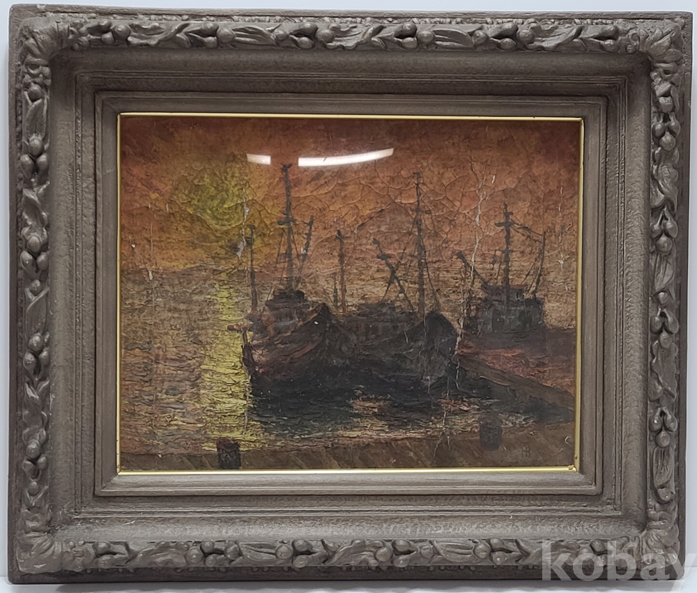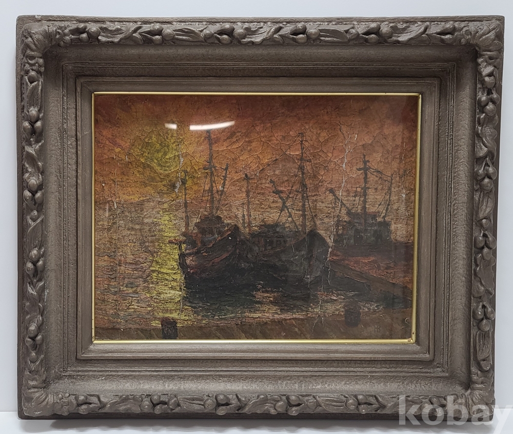 부둣가의 저녁 노을을 정감있게 표현한 작품 입니다만 다소 쓸쓸함도 느껴 집니다.