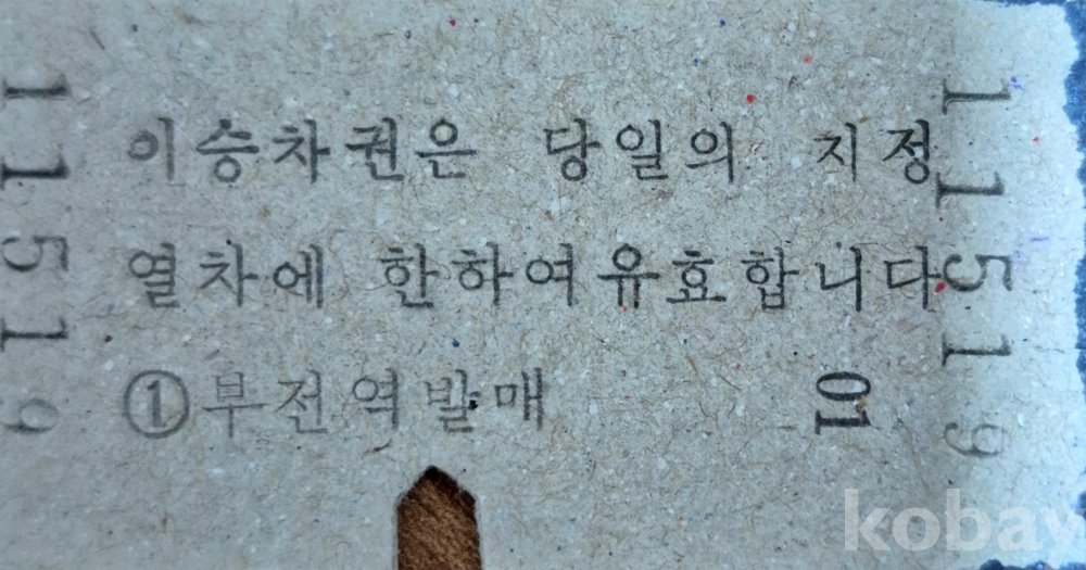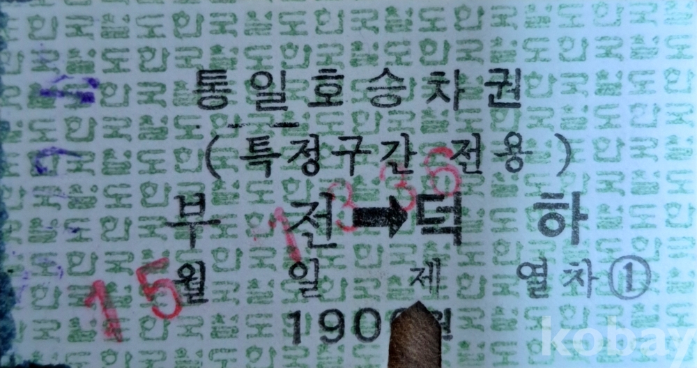 통일호 승차권 특정구간 부전-덕하 일반입니다.