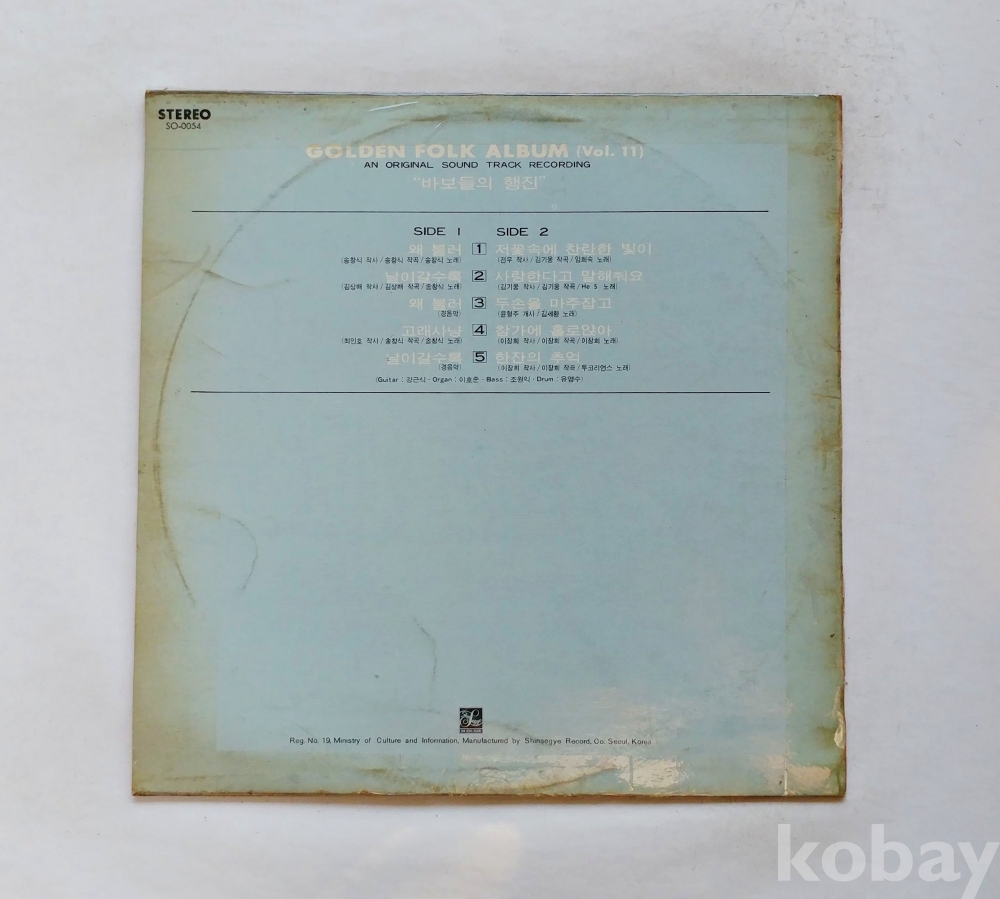 EX : 약간의 마모, 모서리 찢김 존재 음반상태
