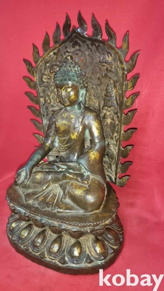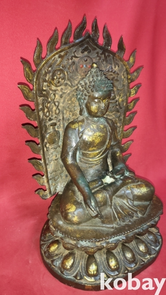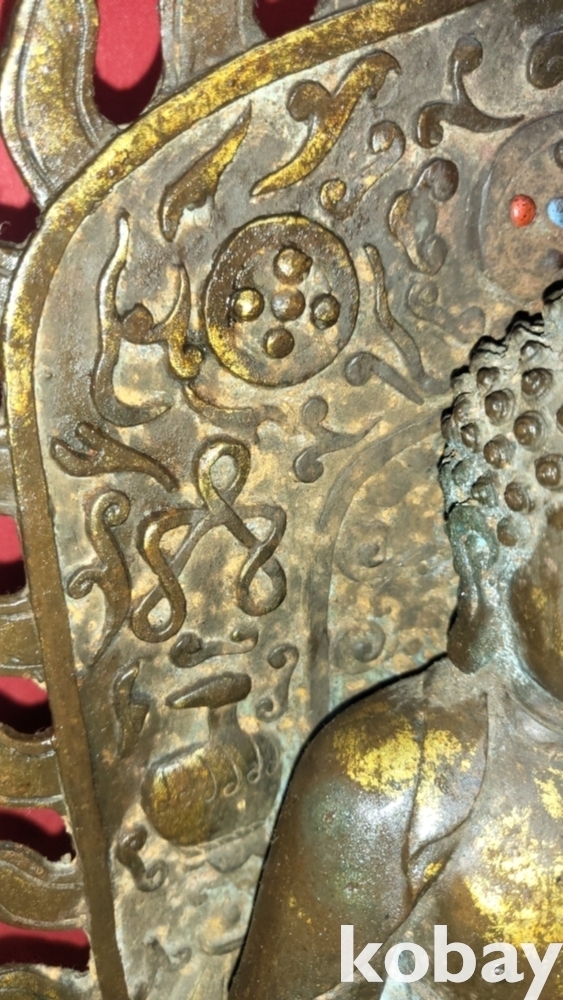 명망기 연대 갖춘 금동 광배있는 좌불상입니다,