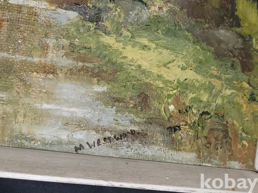 빈티지 세월 감이 느껴지는 희귀한 60년대 제작된 걸로 추정되는 외국 풍경 유화 그림 액자입니다.