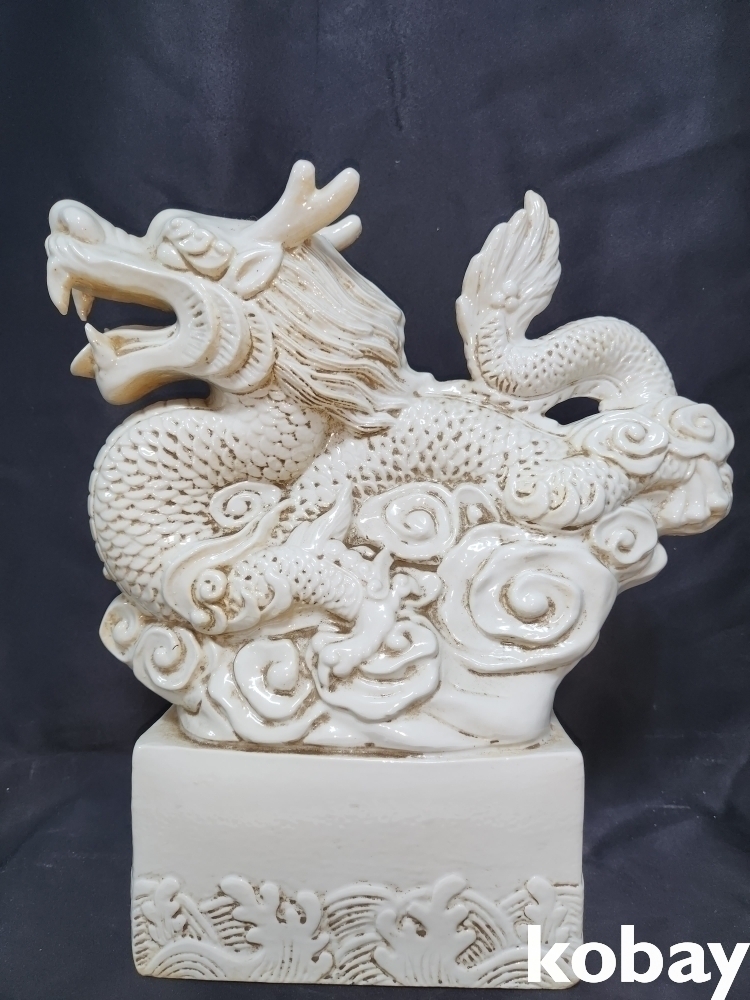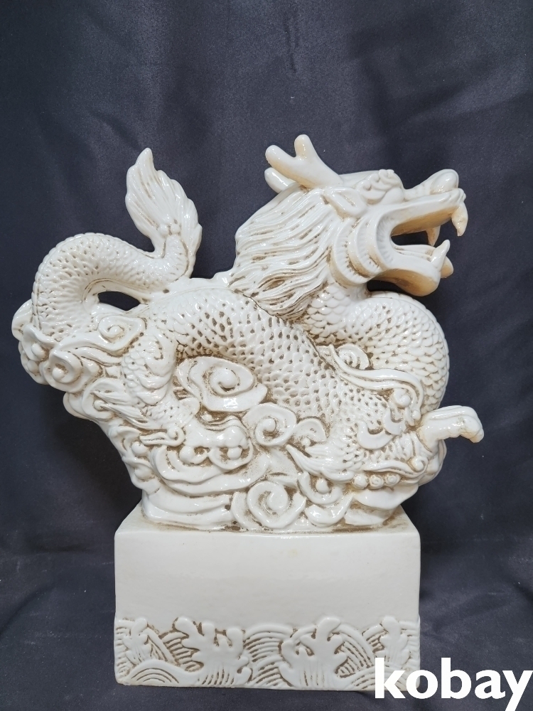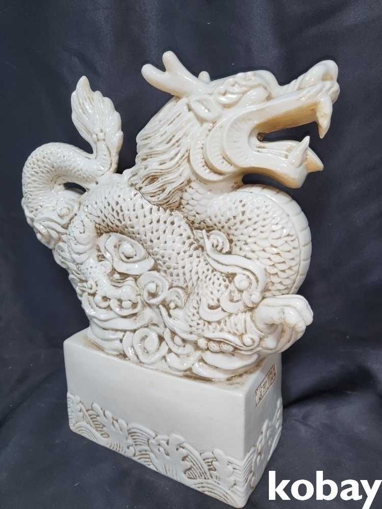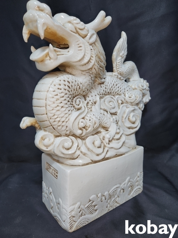 청대 황실 도예가 왕병영 作 백자 용문양 장식 도자기입니다,