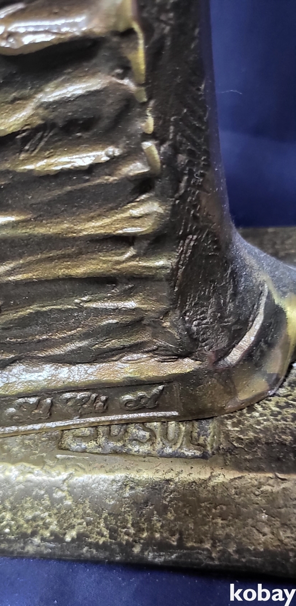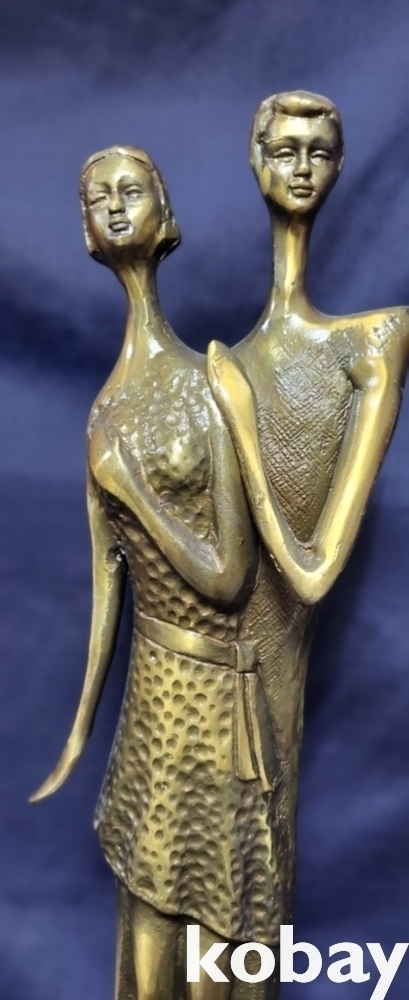 유명 작가의 사인이 보이는 황동 연인 작품입니다,