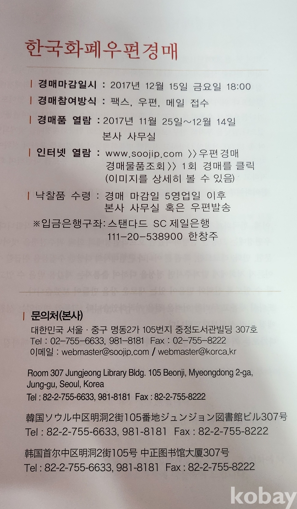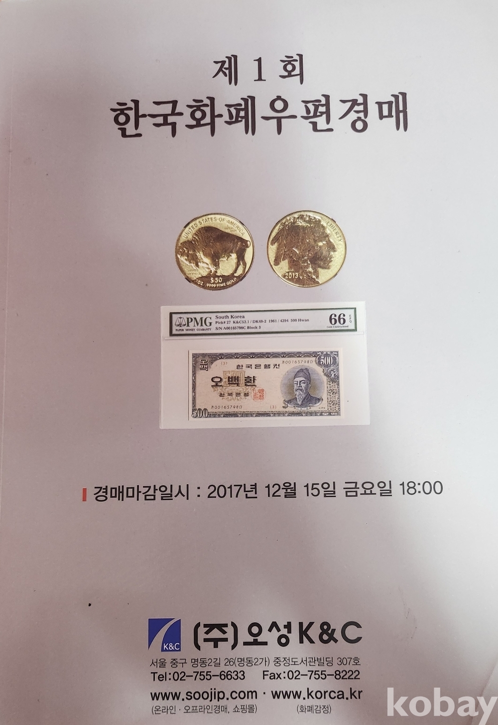 대한민국 형행주화와 각종 기념 주화가 경매 낙찰 가격과 함께 수록된 도록입니다