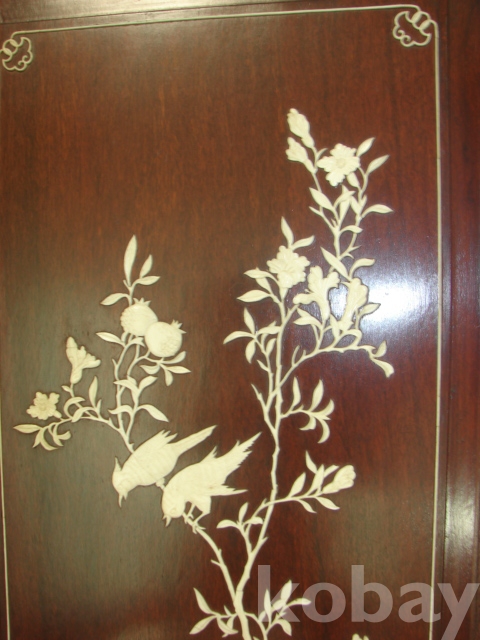 목재 상감 화조문 4폭 병풍(91×40×4)입니다.