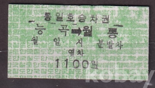 - 미사용 통일호 승차권 " 능곡 ▶ 월롱 " 1100원