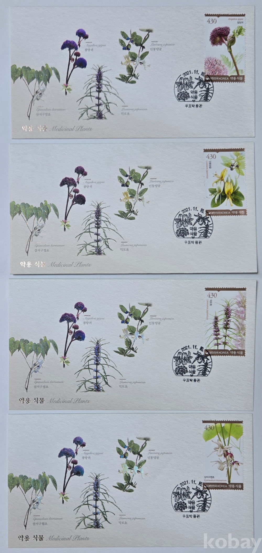 2021년 약용식물 박물관 초일봉투 4종입니다.