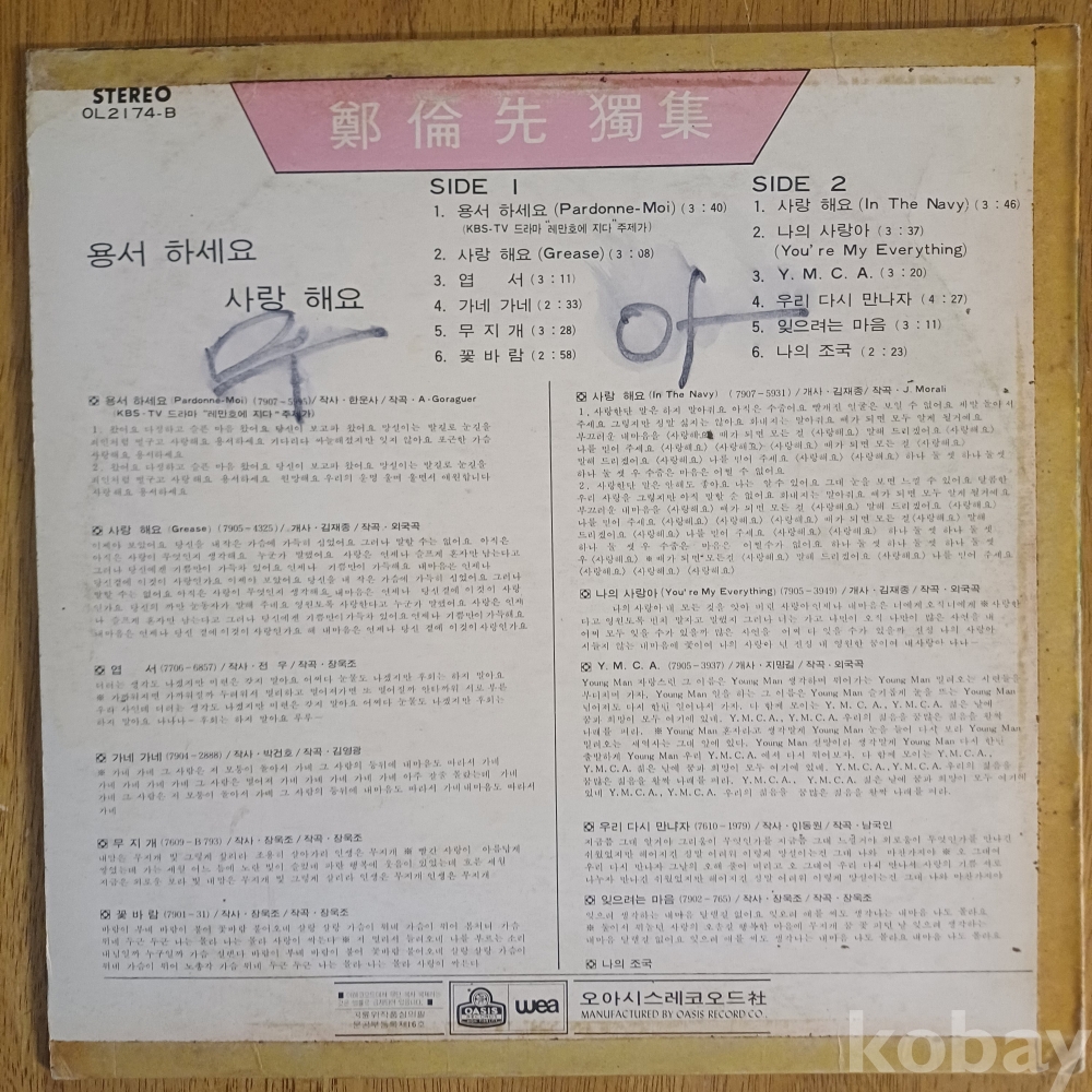 | 자켓상태 | EX : 약간의 마모, 모서리 찢김 존재 | 음반상태 | EX : 재생에 영향 없는 가벼운 기스 존재 | 발매정보 | 초반 | 가사지여부 | 무 |