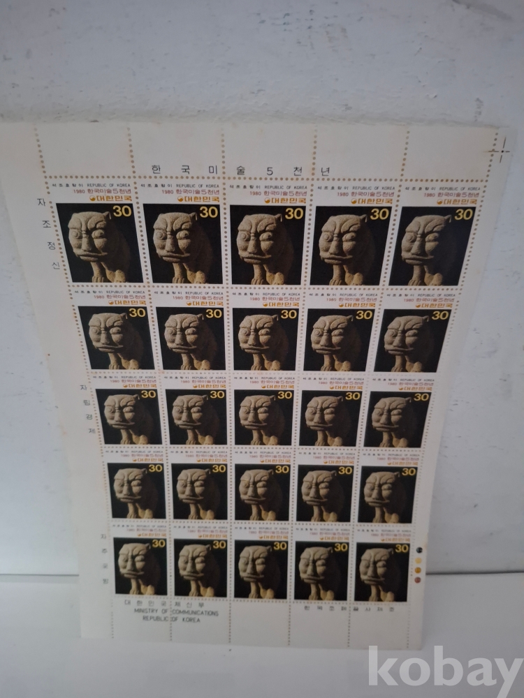 우표정보 분석; 한국 미술 5천년 발행년도; 1980년 주제; 석굴암 사자상(