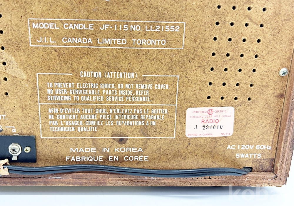 원목으로 된 외관이 특징인 2밴드 라디오로, 한국에서 제조하여 캐나다에 유통된 것으로 확인된다. 전원 : AC 120V, 60Hz, 5W | ||