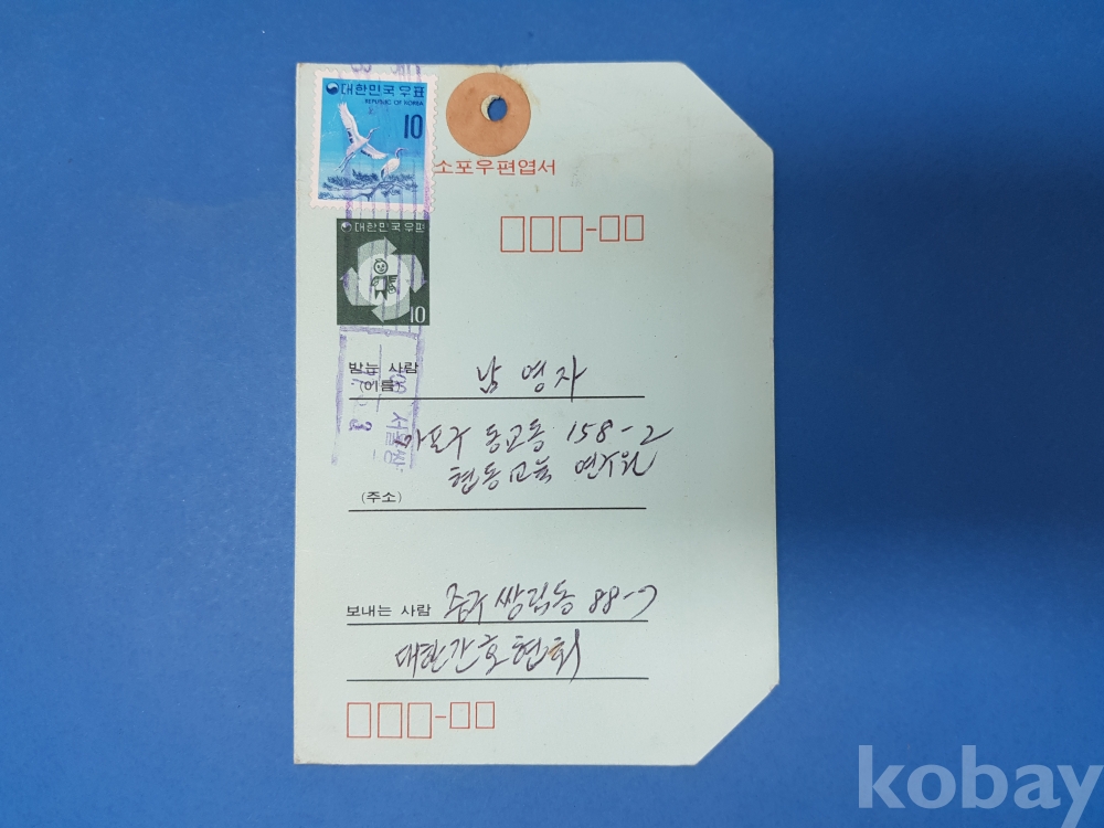 **** 소포우편엽서+10원 첩부 실체/서울쌍림동 로라인