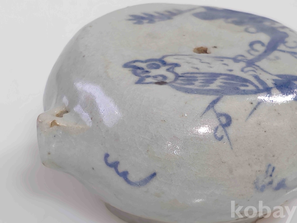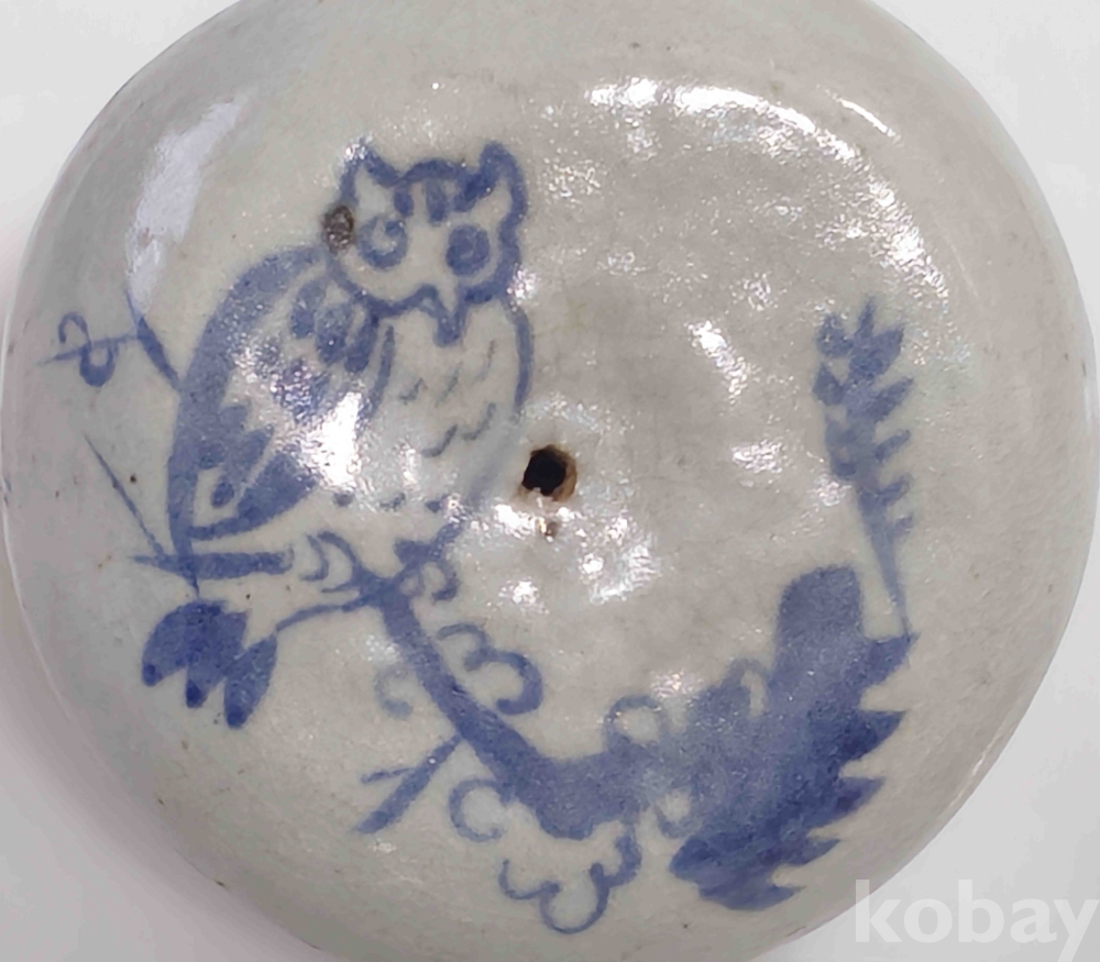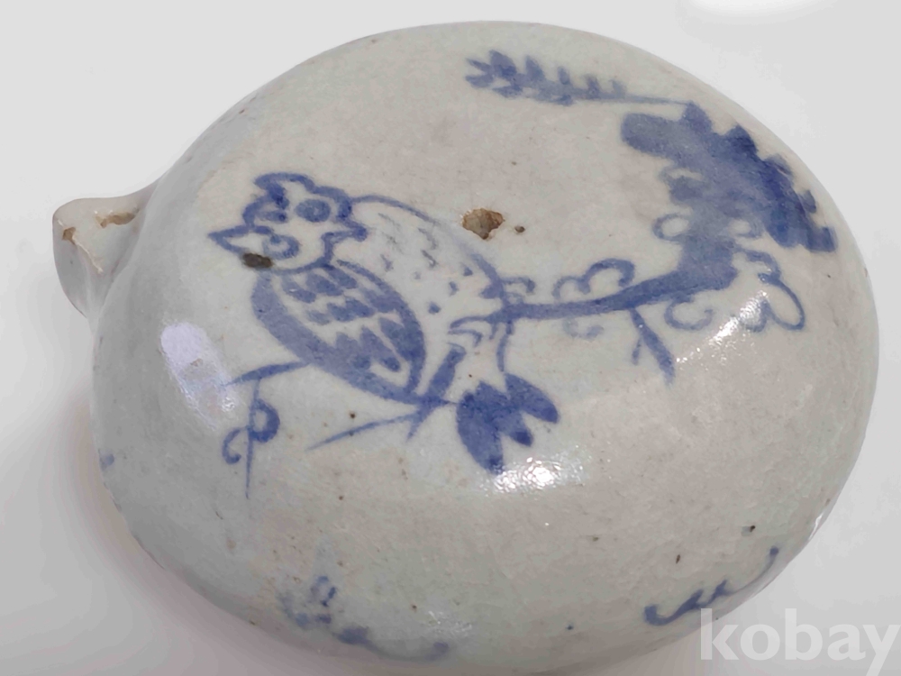 @명칭: 연대감 좋은 연적20 청화백자 올빼미문 연적