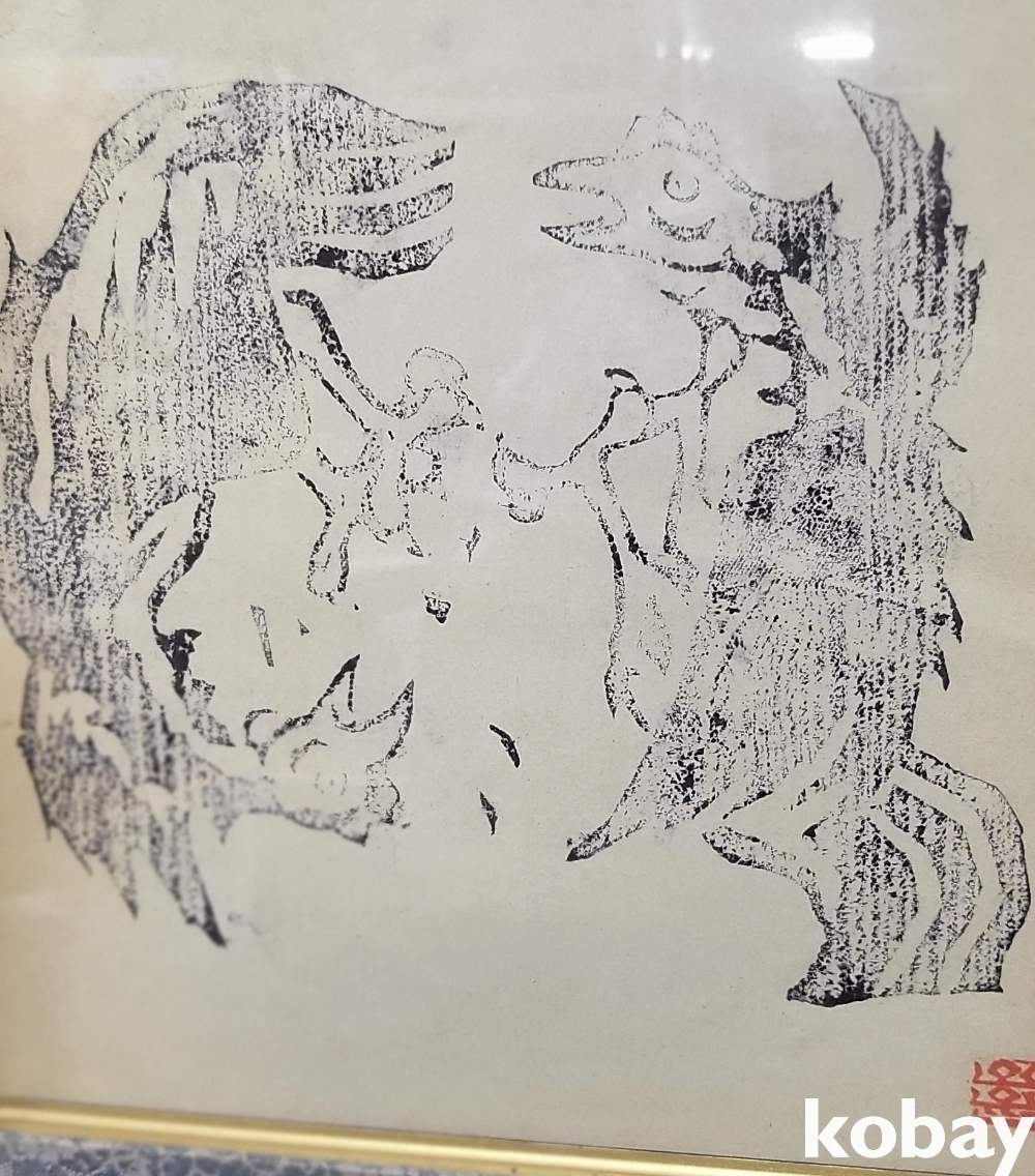 유명 판화가 오윤作 목판화 투계(鬪鷄)입니다,