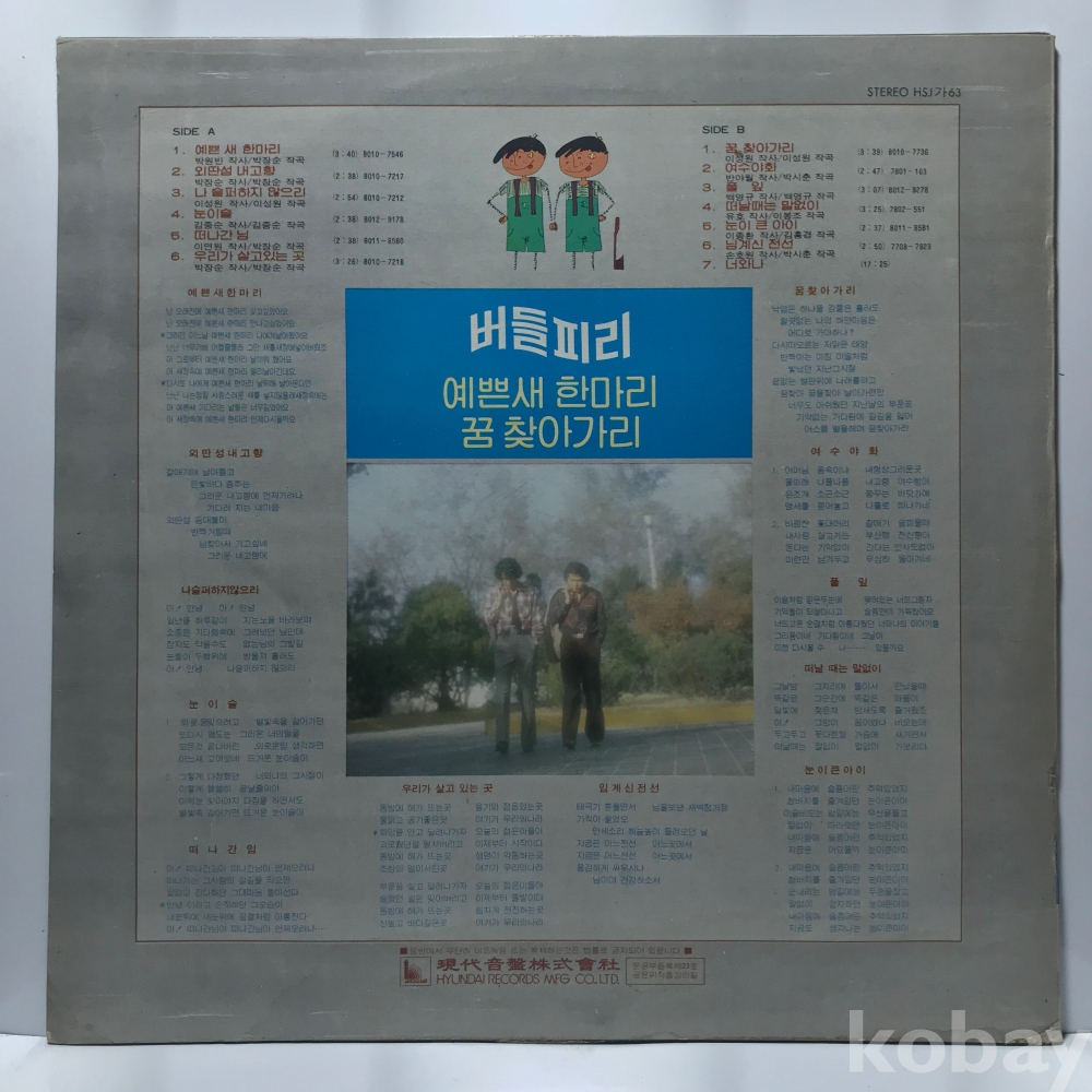 LP 36,550-78 버들피리 - 예쁜새 한마리/ 꿈 찾아가리 . 81 현대 자켓 EX+ 알판 EX+
