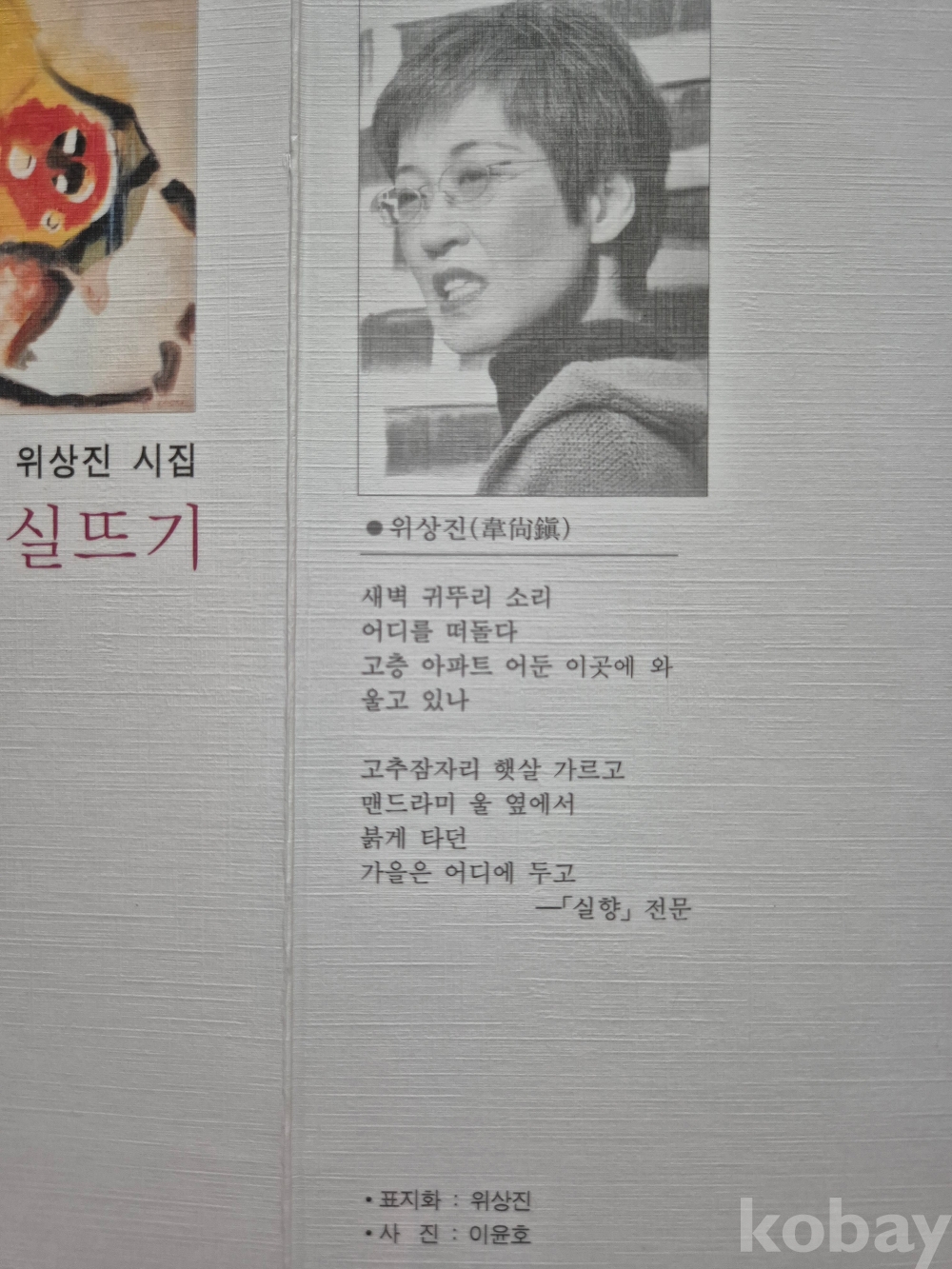 홍익대학교 미술대학 회화과를 졸업한 여류 시인•서양화가(韋尙鎭).
