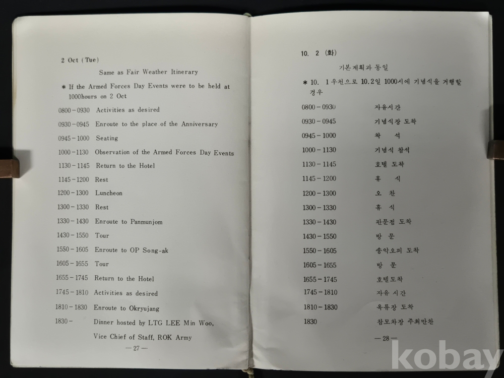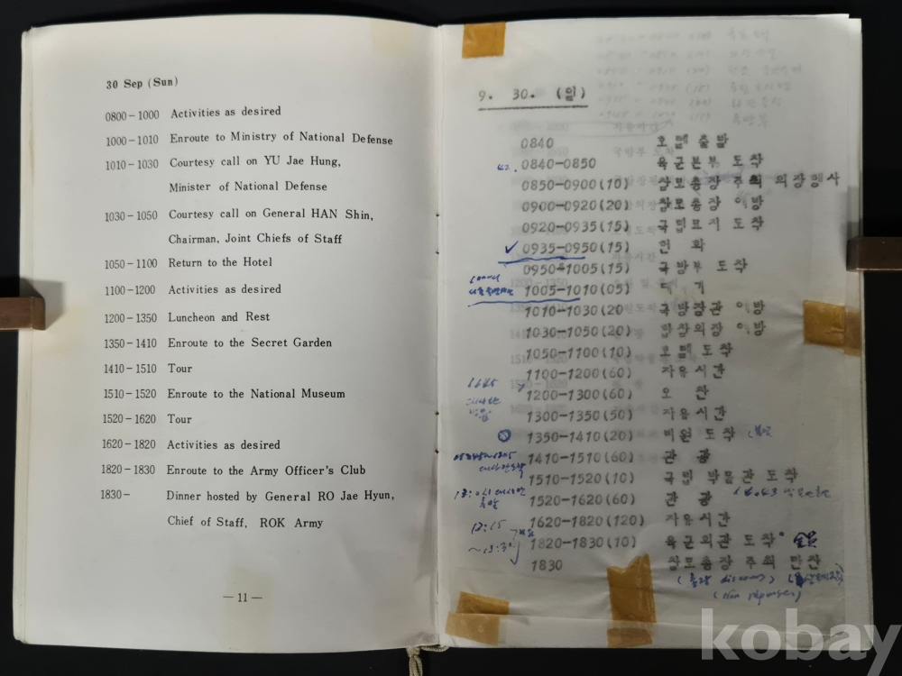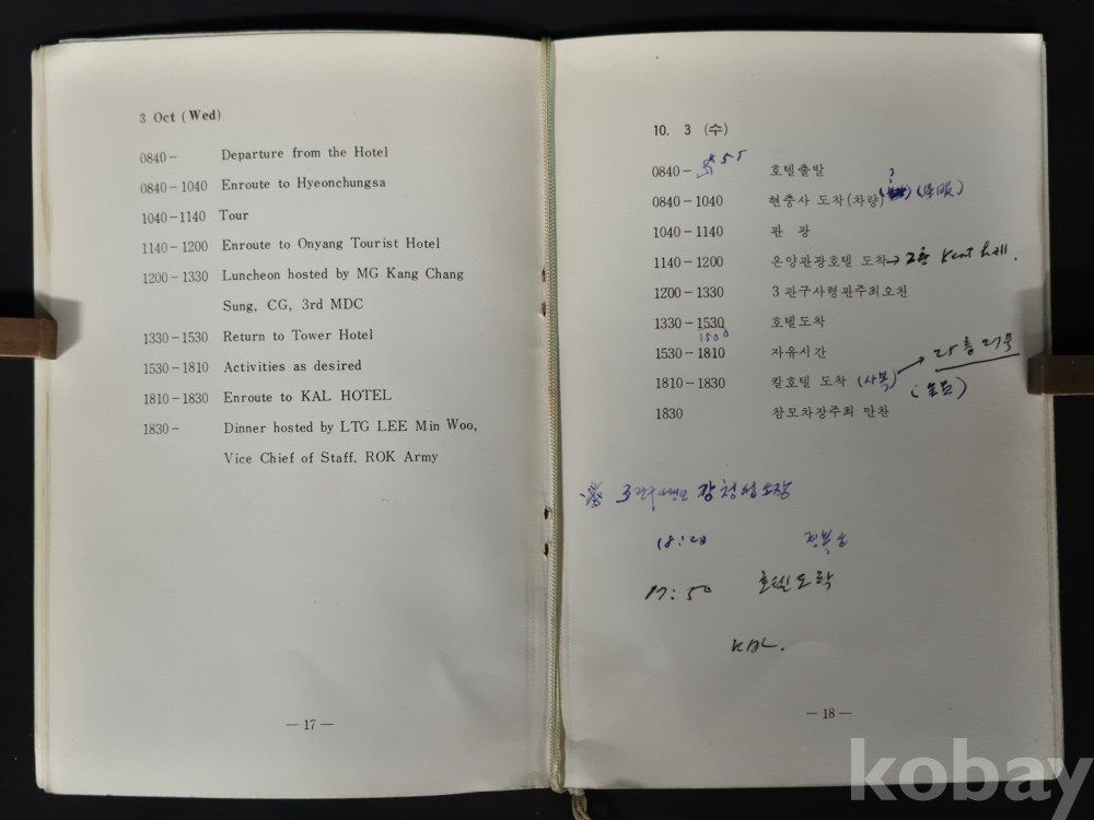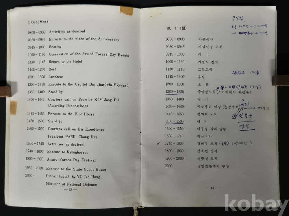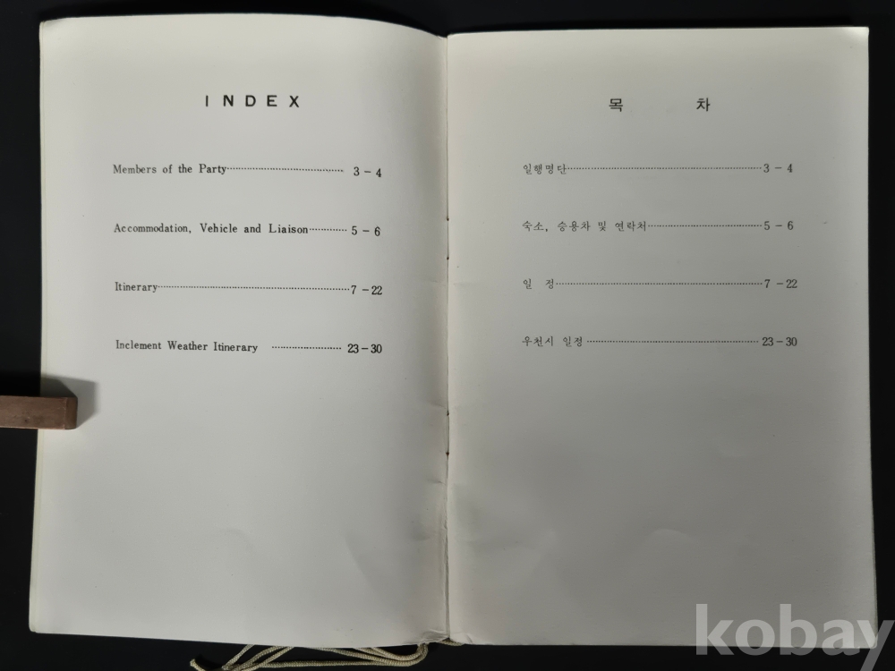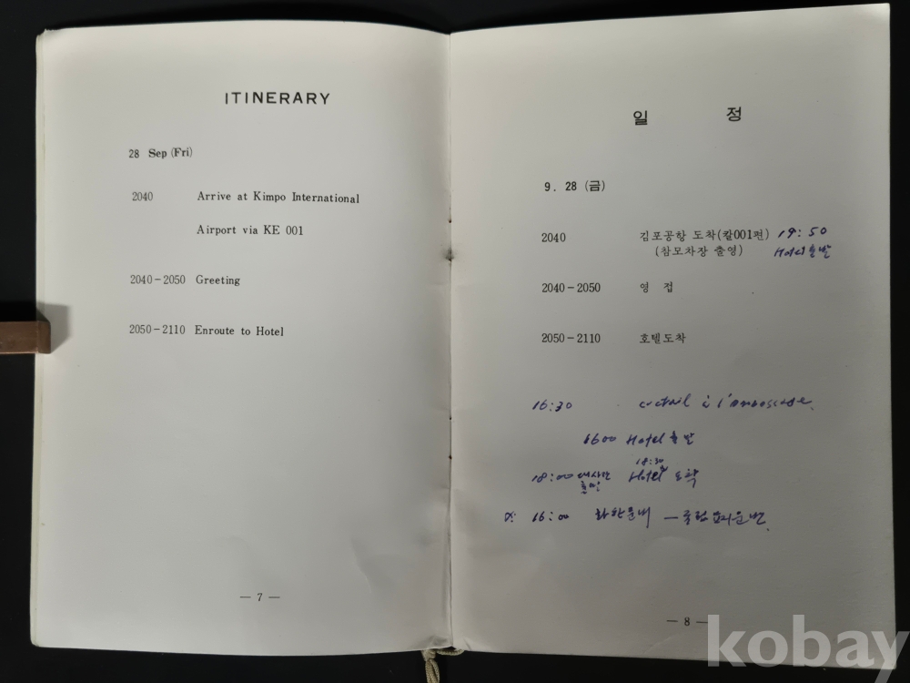 - 책자 경호 및 일정에 대한 메모 등이 있으며, 세월의 흔적이 있습니다. 낱장 없는 상태 입니다.