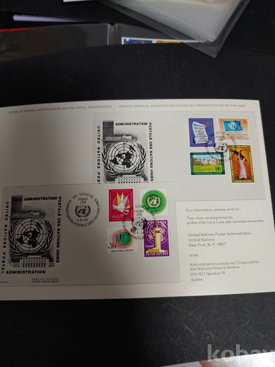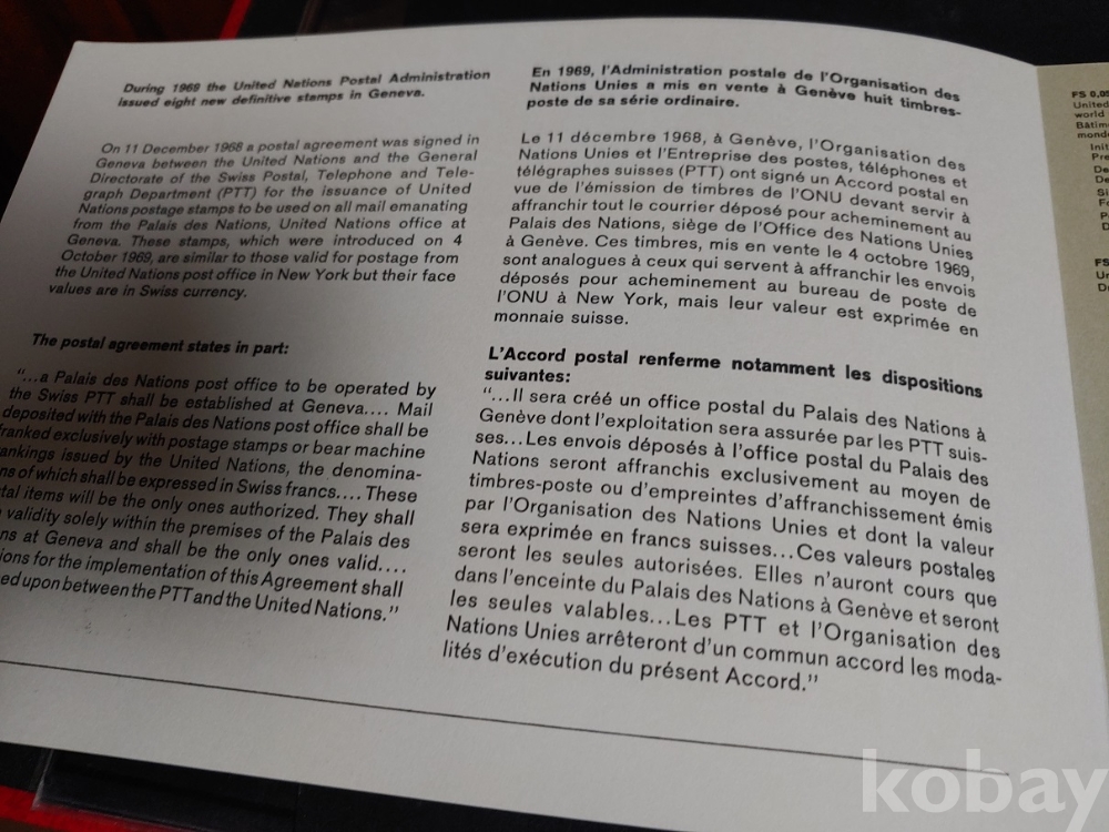이 기념우표 폴드는 1969년 10월4일 유엔에서 발행한 우표폴드로