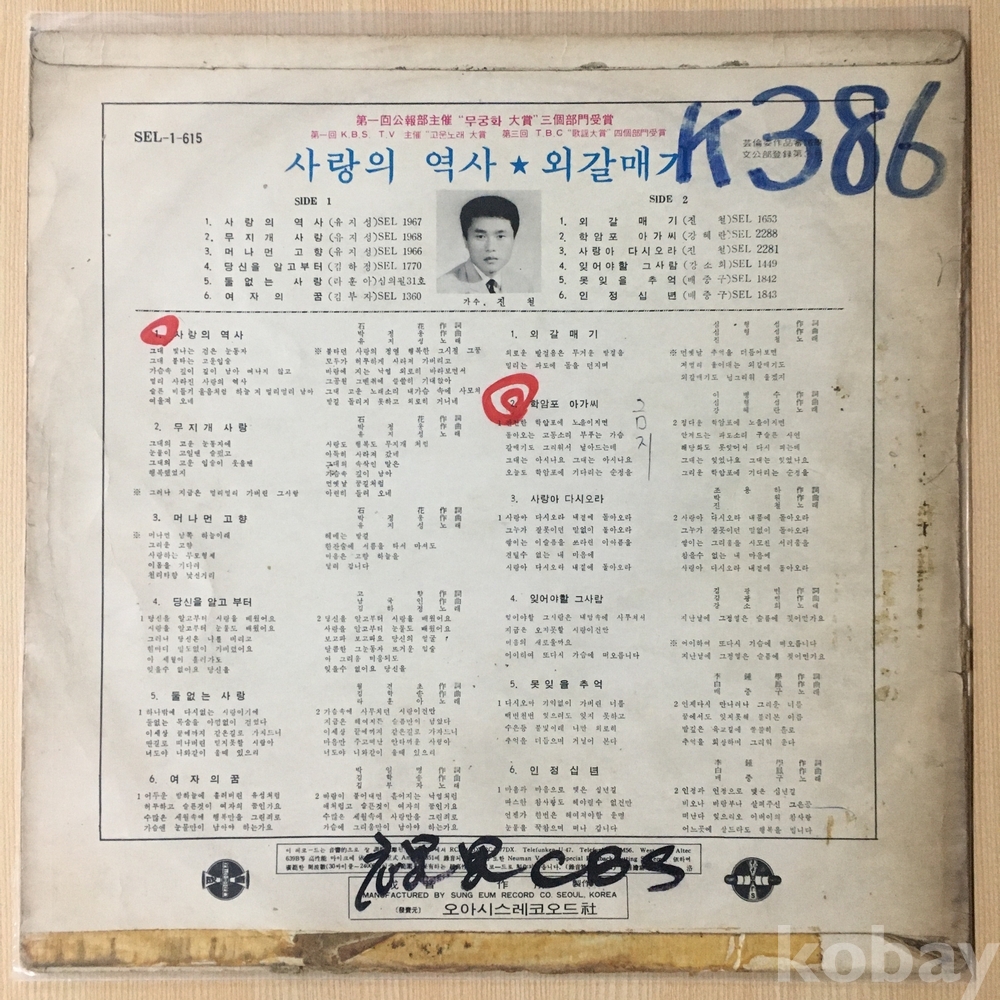 . 가요음반 대부분은 휘어짐이나 손상을 방지하기 위해 무지싱글자킷을 하나 더 사용하여 보관되었던 음반들입니다.