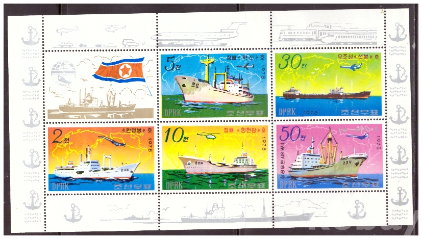 (선박) 북한 1978.5.5 선박 sheetlet of 5+label MNH