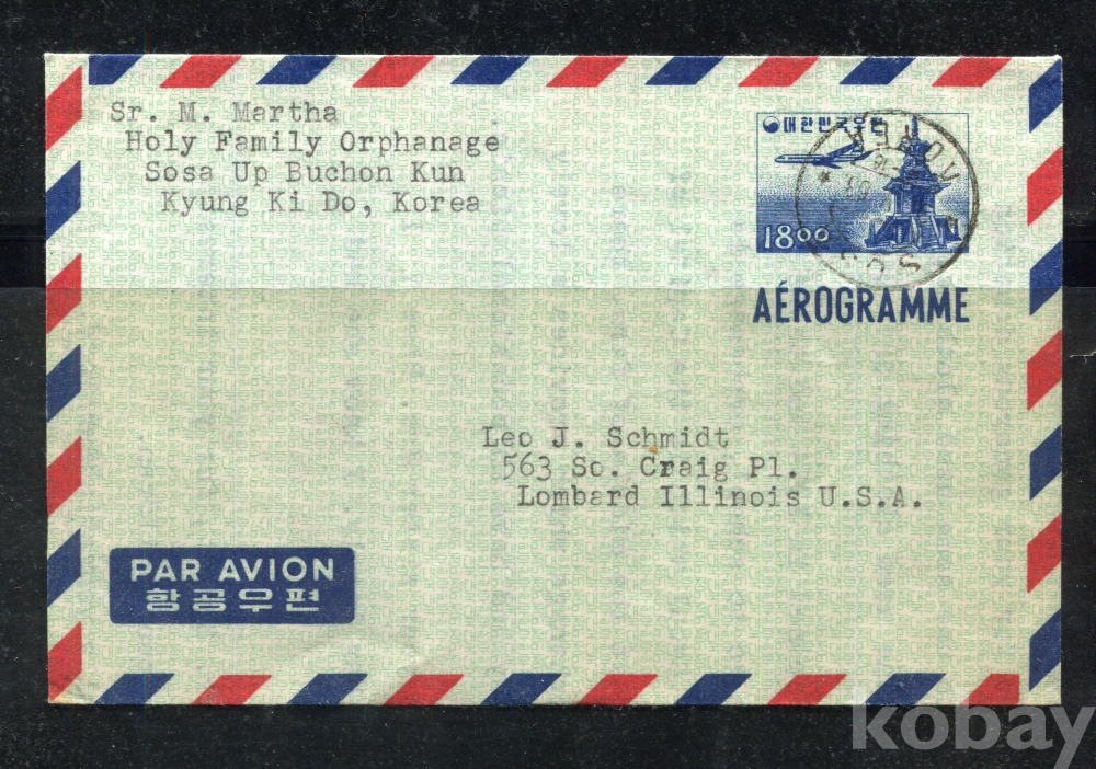 - [항공서간] 1963년 18환 미국행 실체 (SOSA 3. MAY. 63 소인) : 이미지 참조하세요
