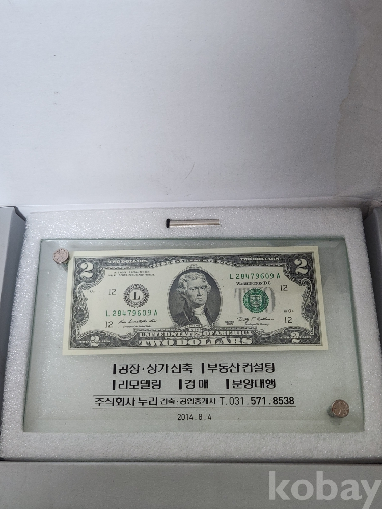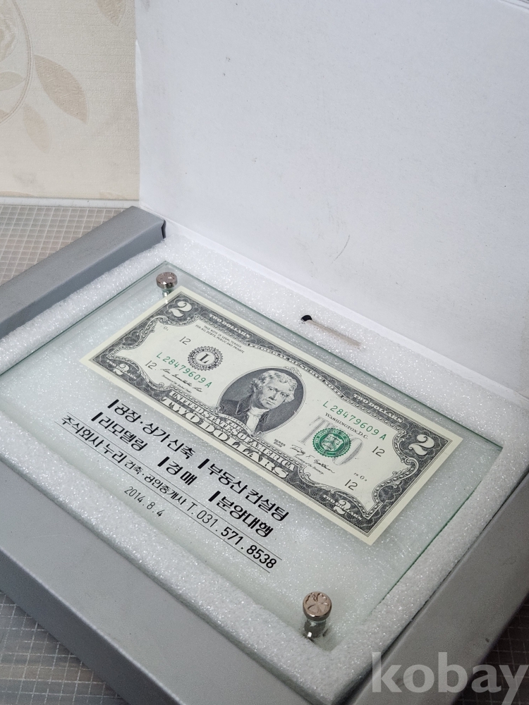 (땡처리) 2달러 지폐가 들어있는 액자입니다