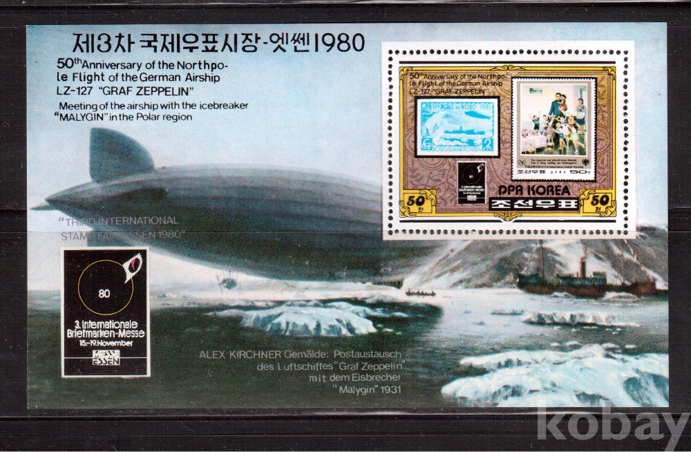 (비행선) 북한 1980.9.25 제3차 국제우표시장 <<에쎈 1980>> s/s MNH