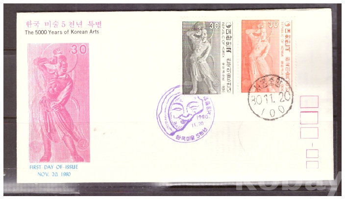 (초일봉피) 1980.11.20 한국미술 5천년 특별우표*금강역사상 FDC (서울중앙)