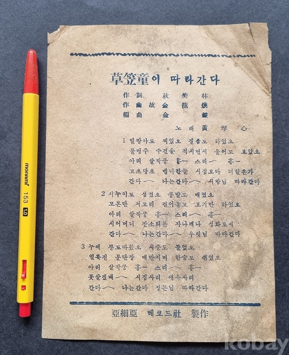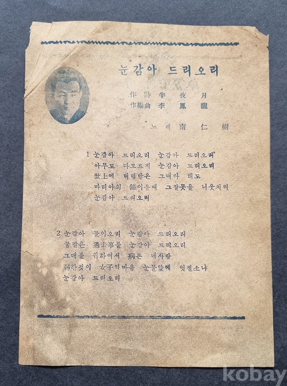 ro-33 / 해방전 ~일제강점기 오리지널 sp음반 (돌판) 가사지 (희귀 돌판 가사지) "눈감아 드리오리"