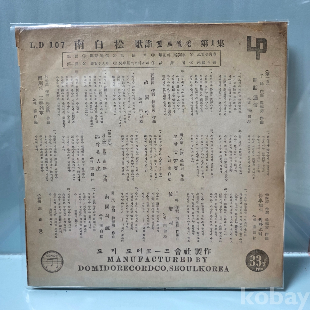 | 자켓상태 | VG : 주름, 접힘, 모서리 찢김 다수 | 음반상태 | VG : 생활 기스 다수, 가벼운 노이즈 존재 | 발매정보 | 초반 | 가사지여부 | 무 |