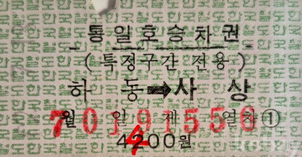 통일호 승차권 하동-사상 특정구간 일반입니다.